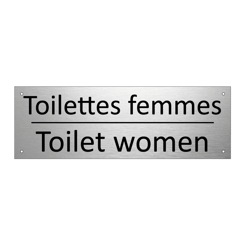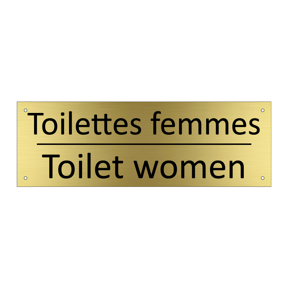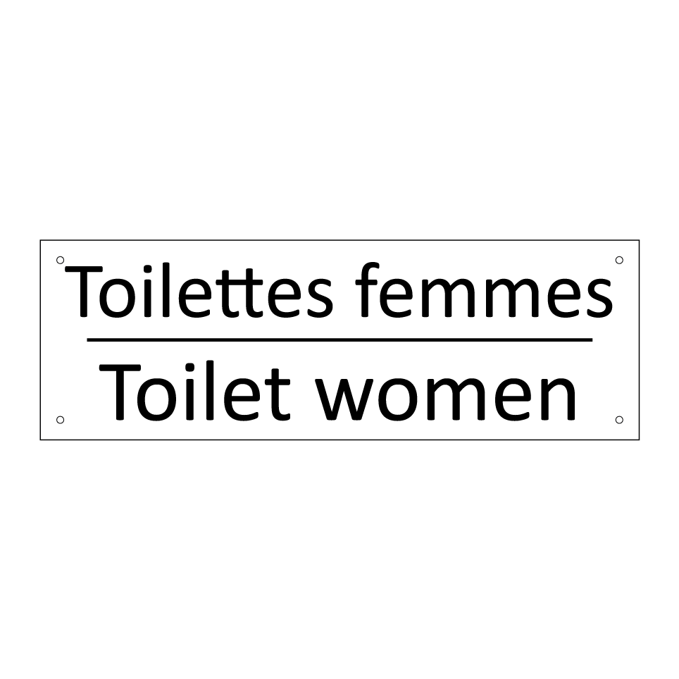 Panneau d'information avec le texte Toilettes femmes|Toilet women en français et en anglais.