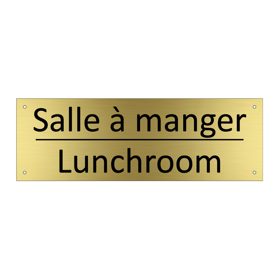 Panneau d'information avec le texte Salle à manger|Lunchroom en français et en anglais.