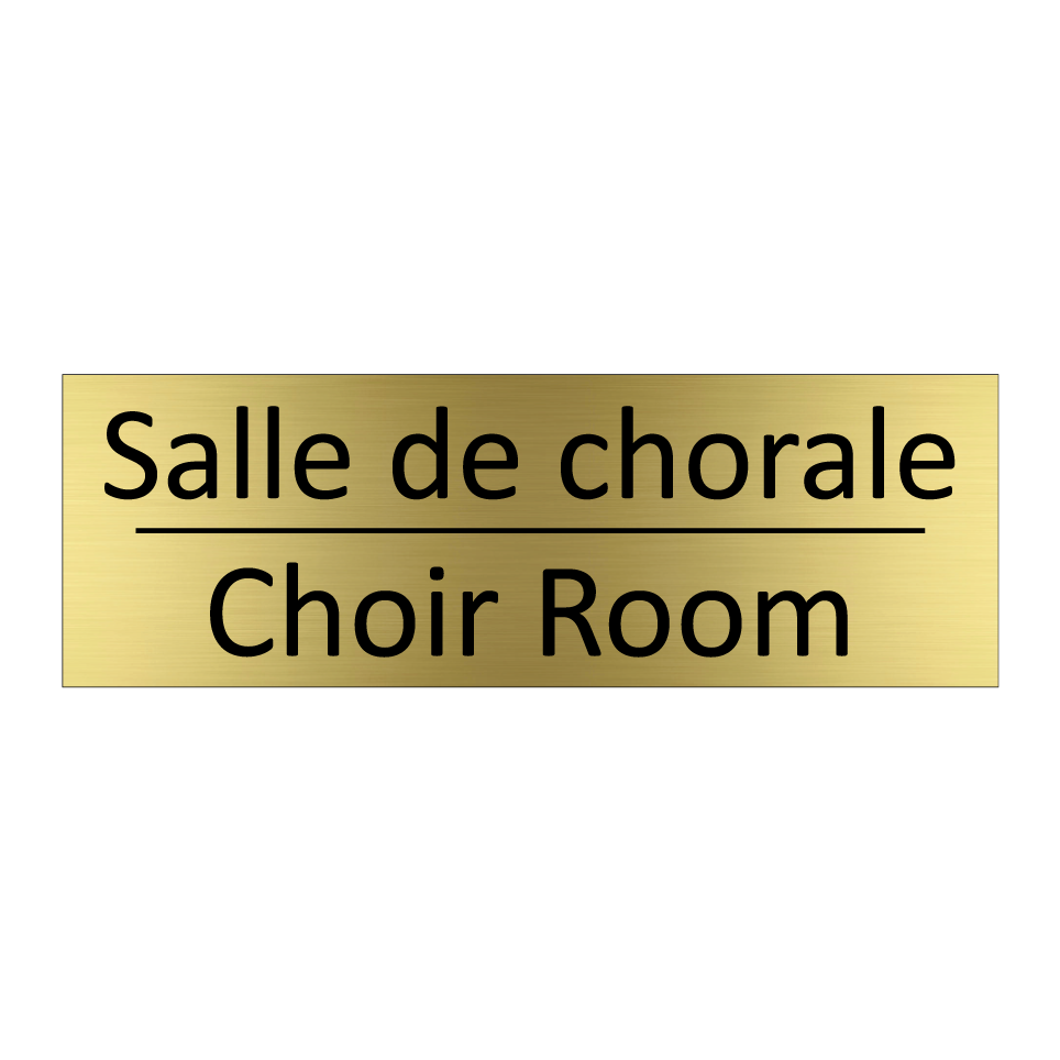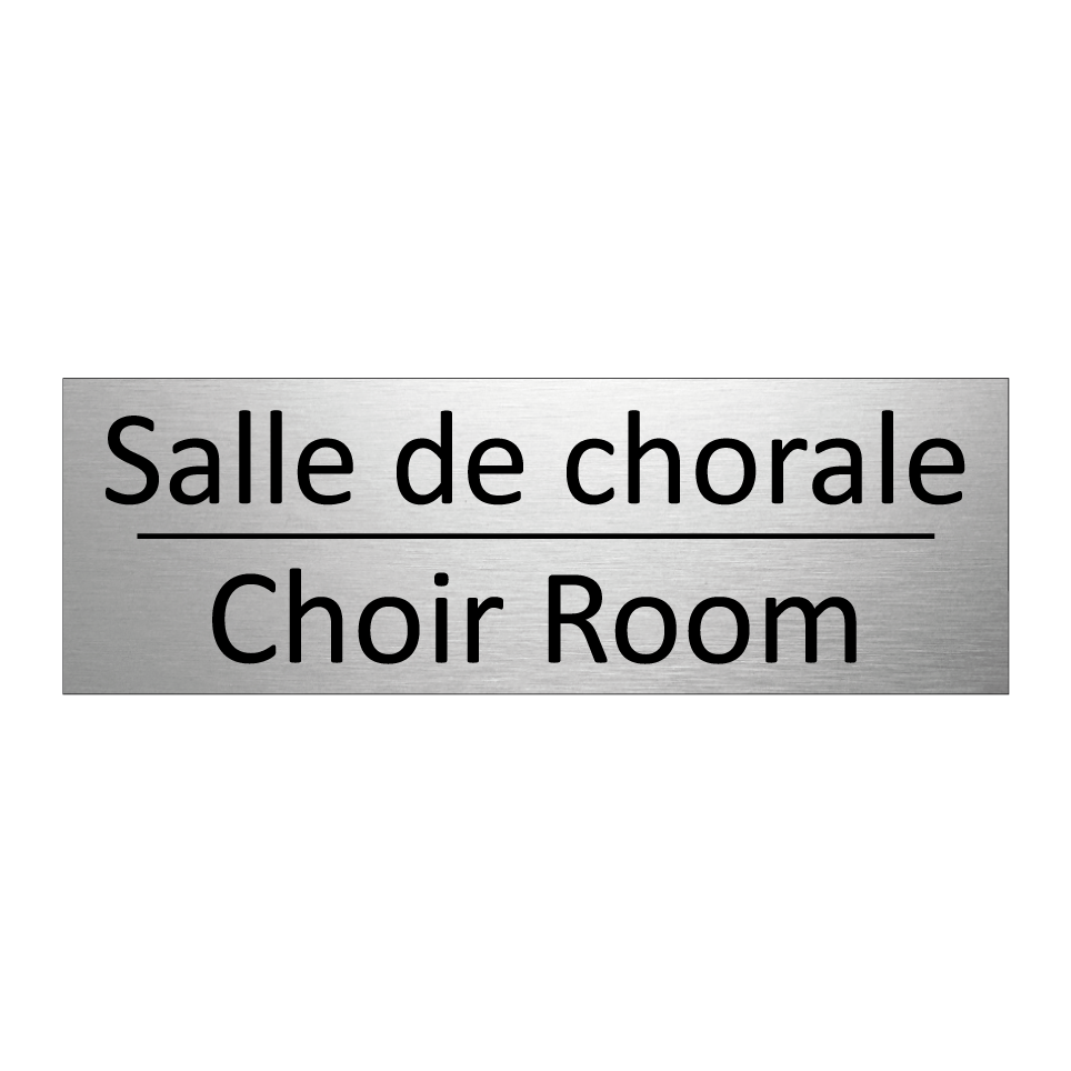 Panneau d'information avec le texte Salle de chorale|Choir Room en français et en anglais.