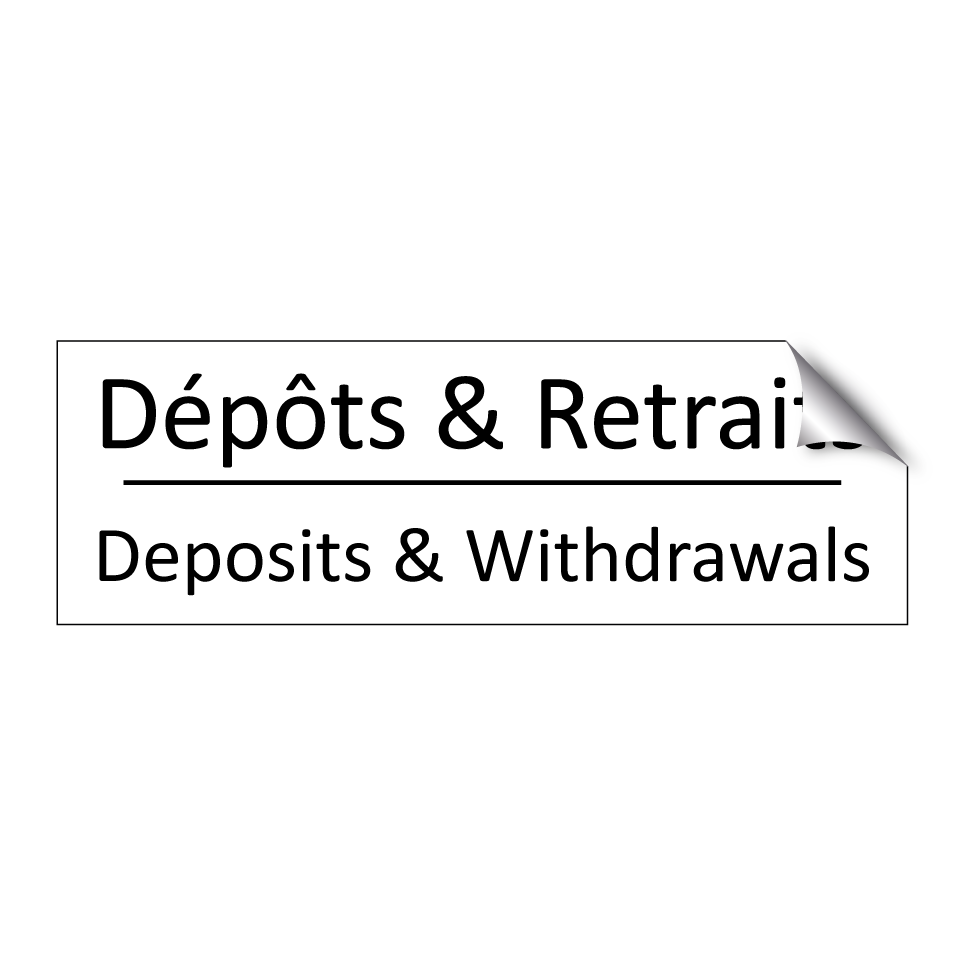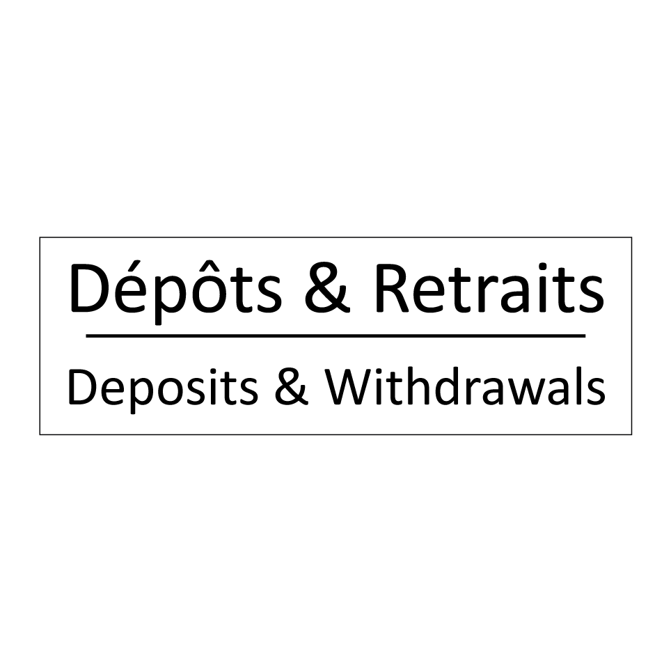 Panneau d'information avec le texte Dépôts & Retraits|Deposits & Withdrawals en français et en anglais.