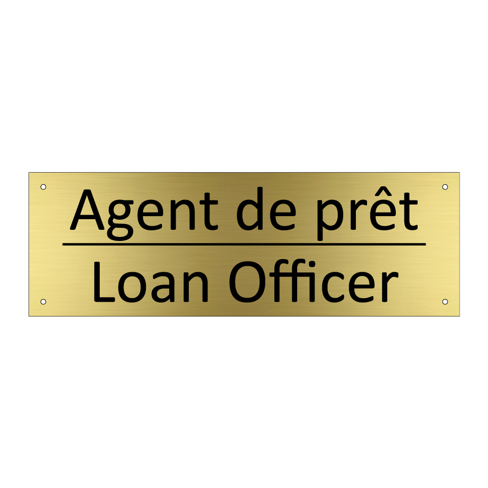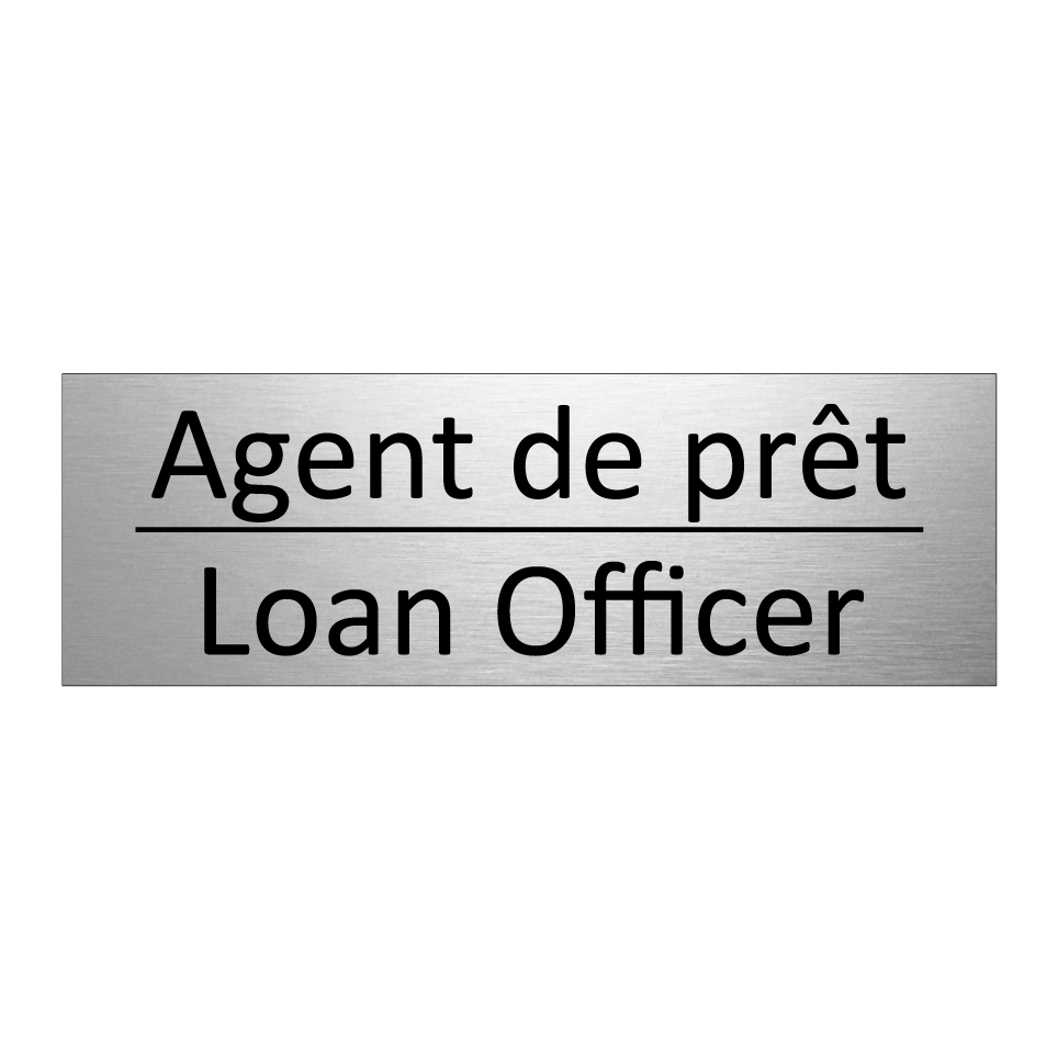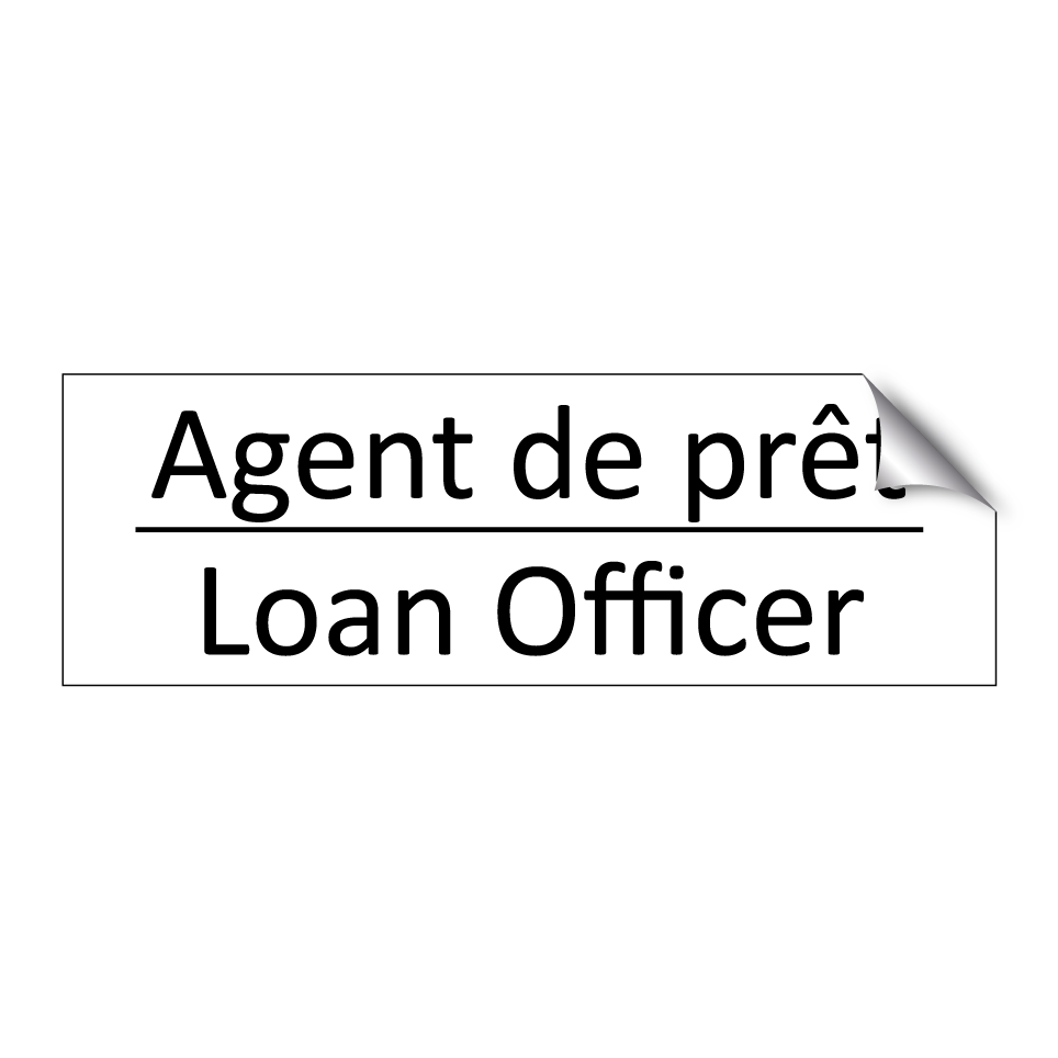 Panneau d'information avec le texte Agent de prêt|Loan Officer en français et en anglais.