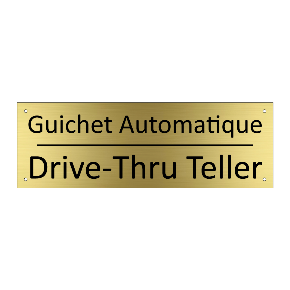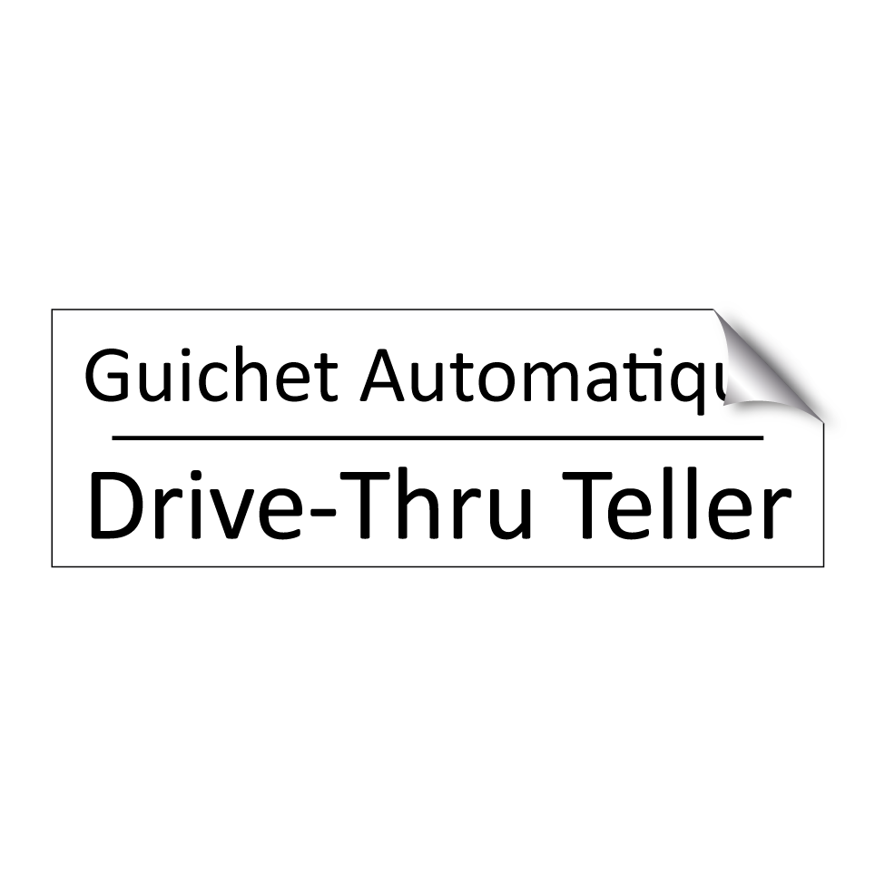 Panneau d'information avec le texte Guichet Automatique|Drive-Thru Teller en français et en anglais.