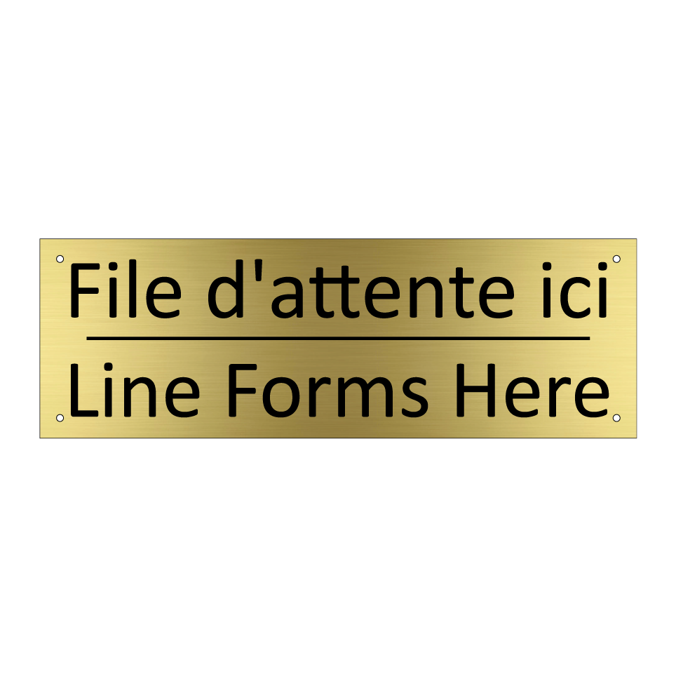 Panneau d'information avec le texte File d'attente ici|Line Forms Here en français et en anglais.