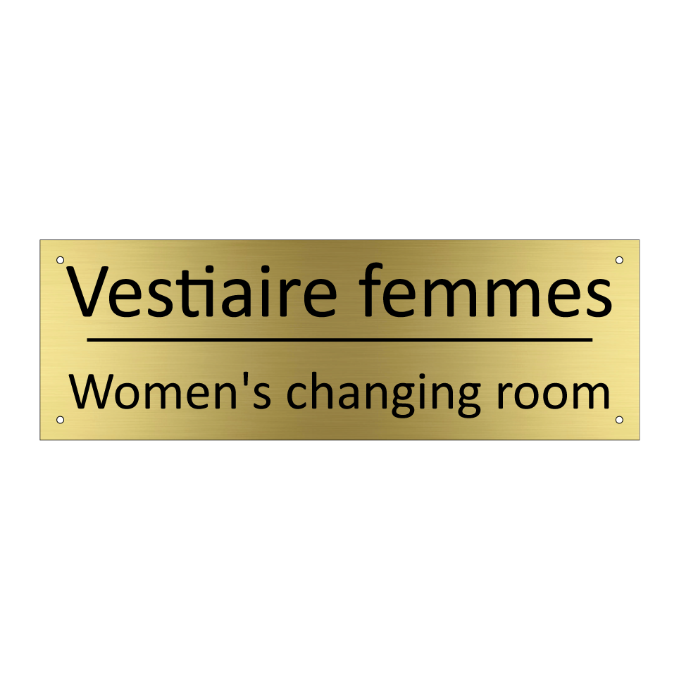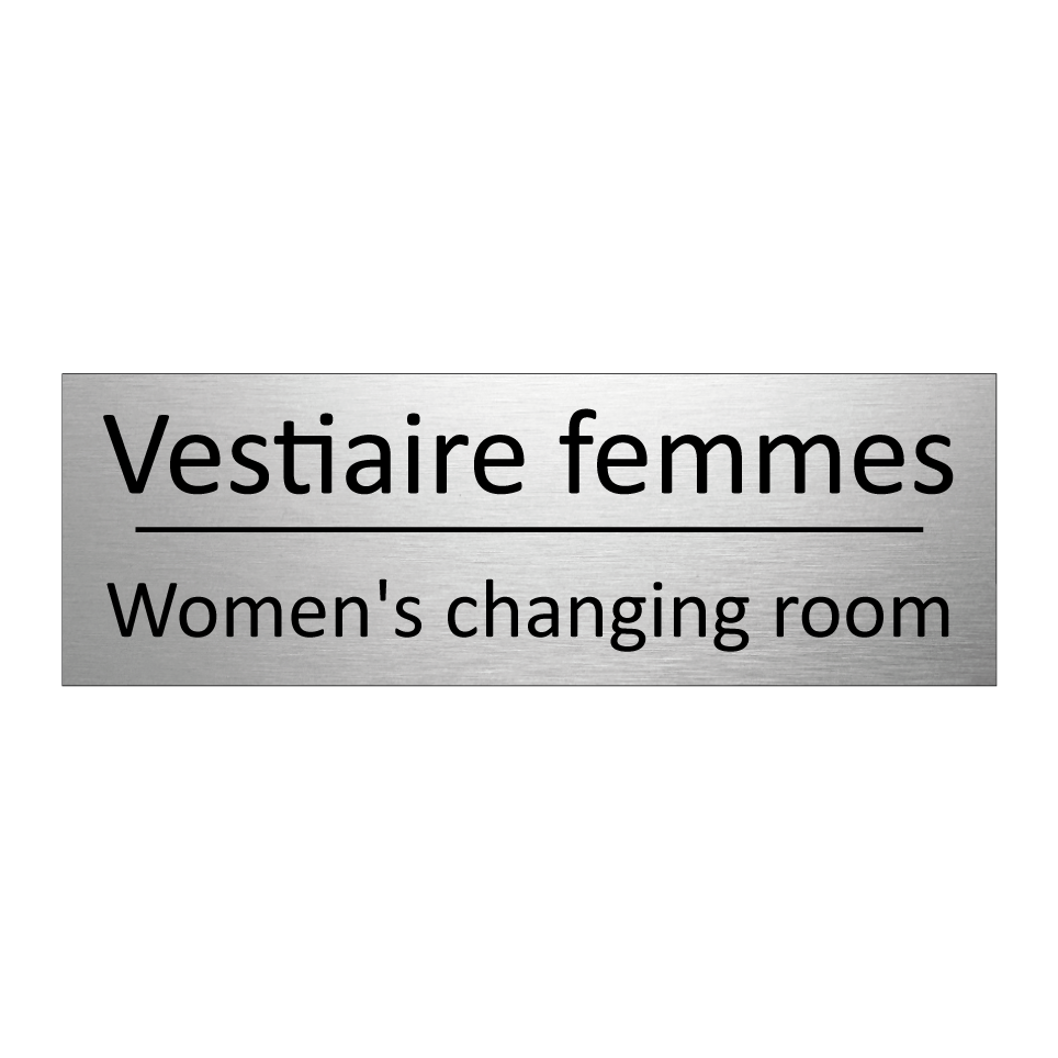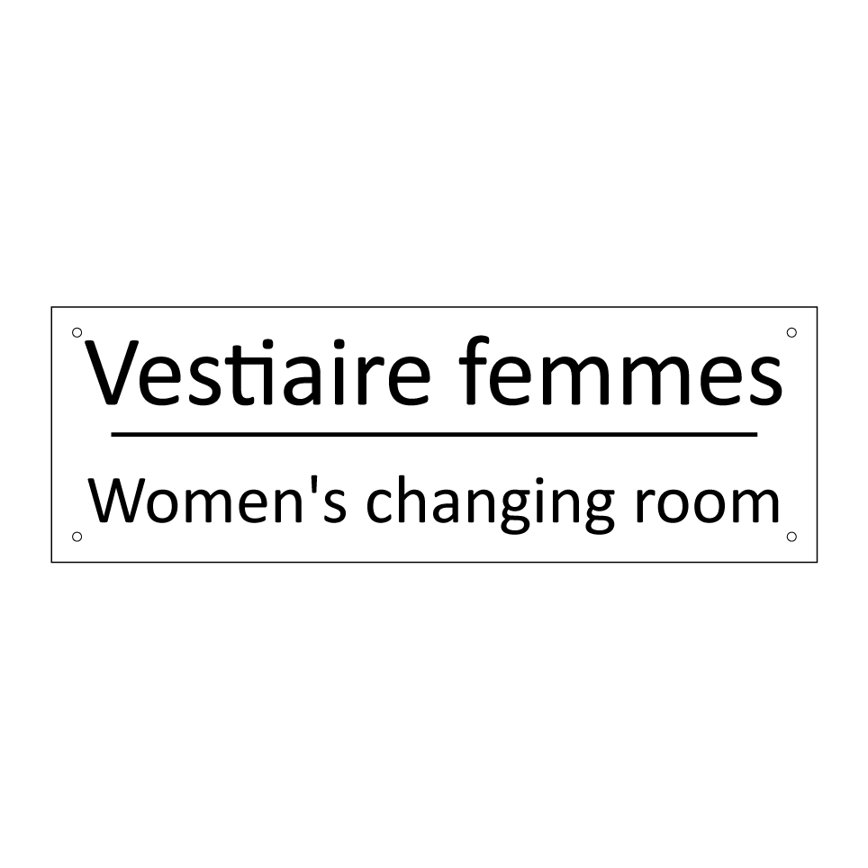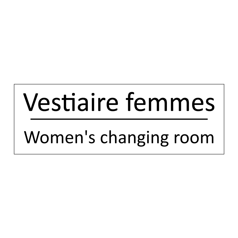 Panneau d'information avec le texte Vestiaire femmes|Women's changing room en français et en anglais.