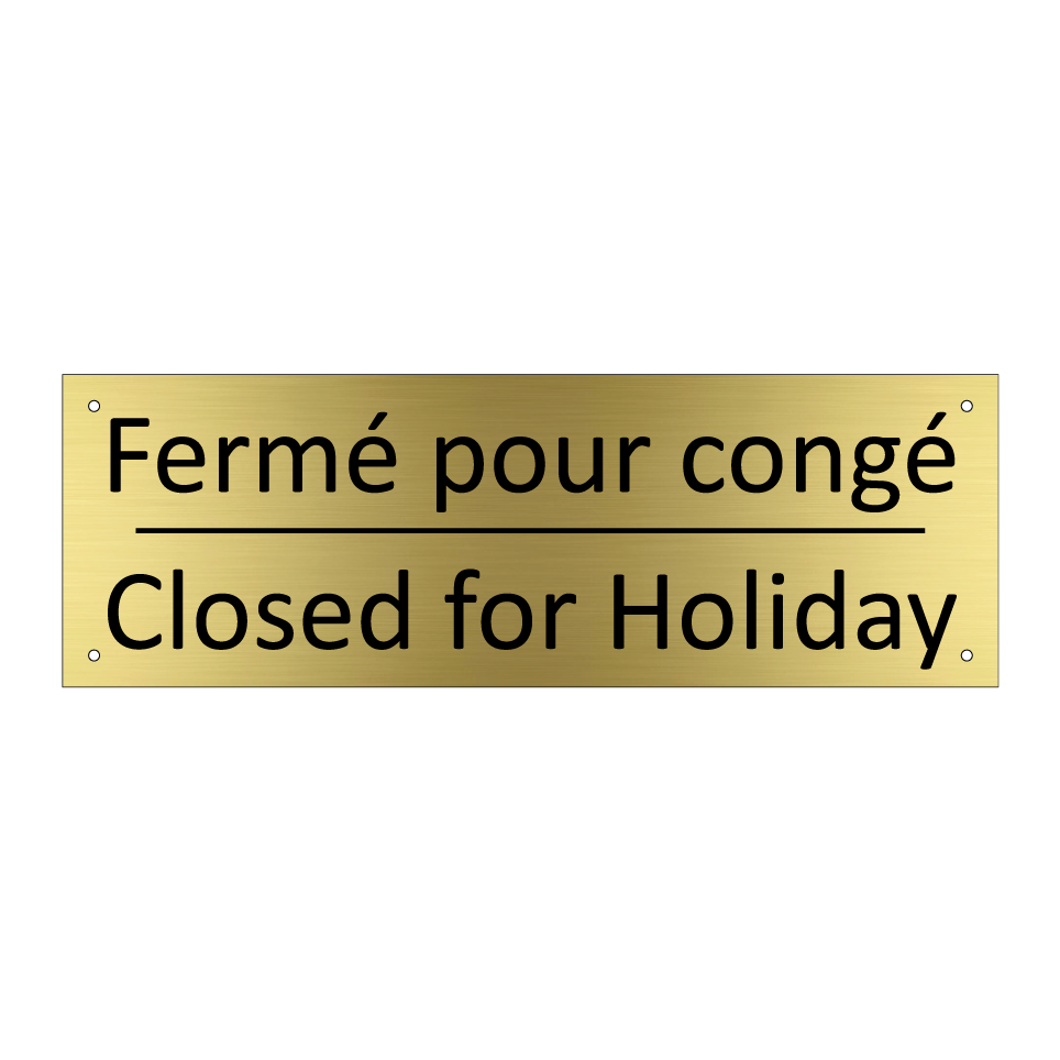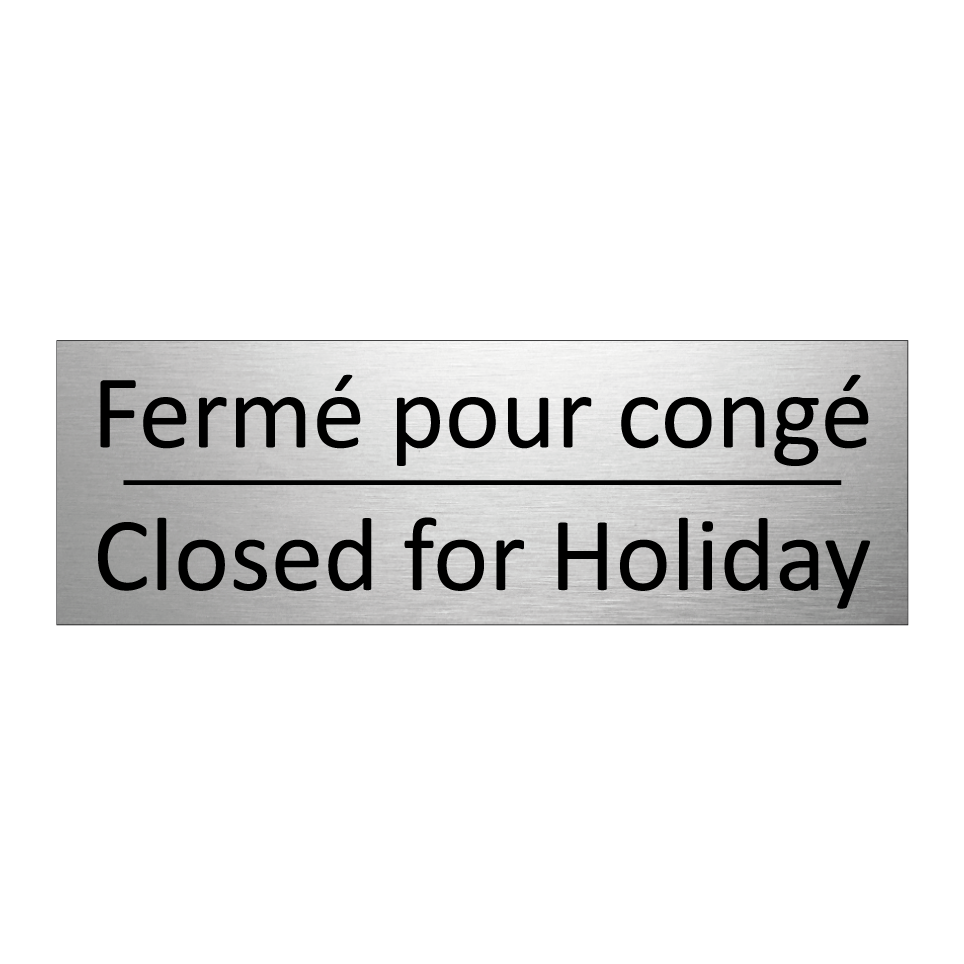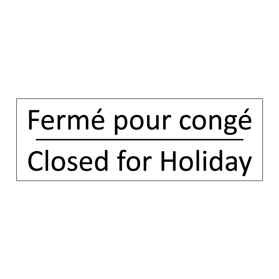 Panneau d'information avec le texte Fermé pour congé|Closed for Holiday en français et en anglais.