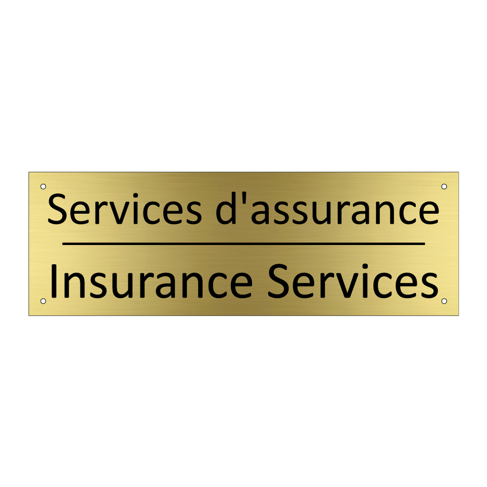 Panneau d'information avec le texte Services d'assurance|Insurance Services en français et en anglais.