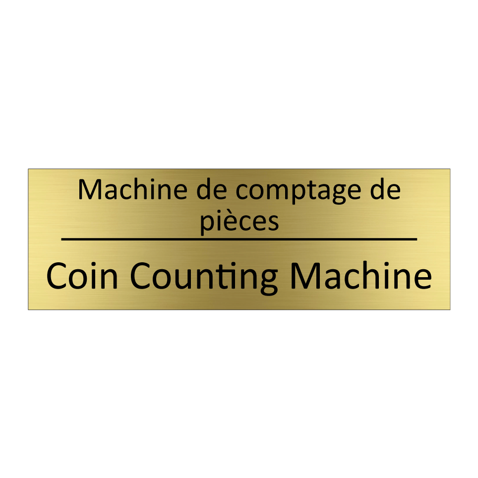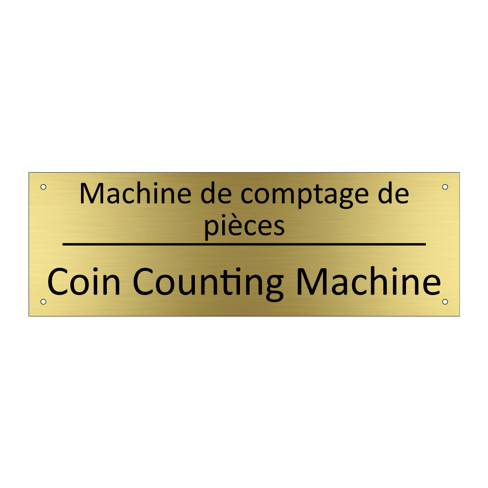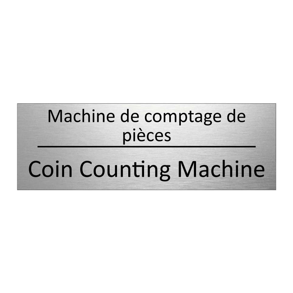 Panneau d'information avec le texte Machine de comptage de pièces|Coin Counting Machine en français et en anglais.