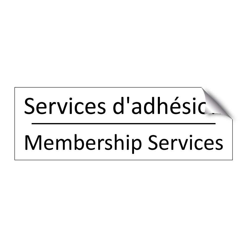Panneau d'information avec le texte Services d'adhésion|Membership Services en français et en anglais.