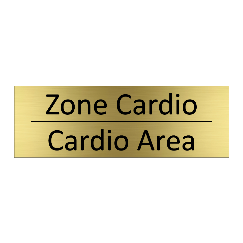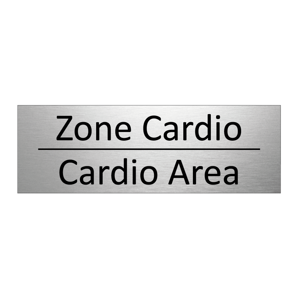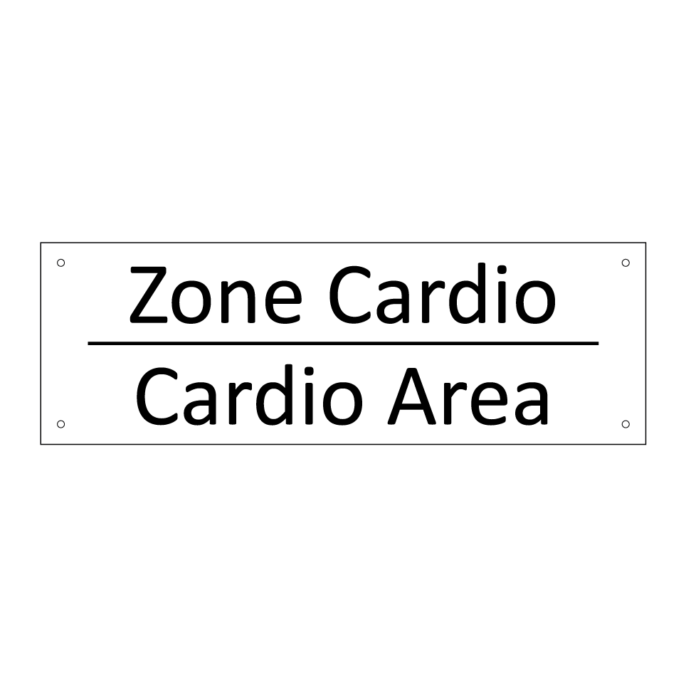 Panneau d'information avec le texte Zone Cardio|Cardio Area en français et en anglais.