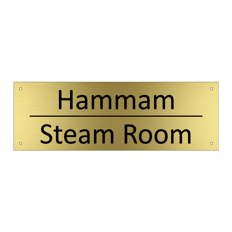 Panneau d'information avec le texte Hammam|Steam Room en français et en anglais.