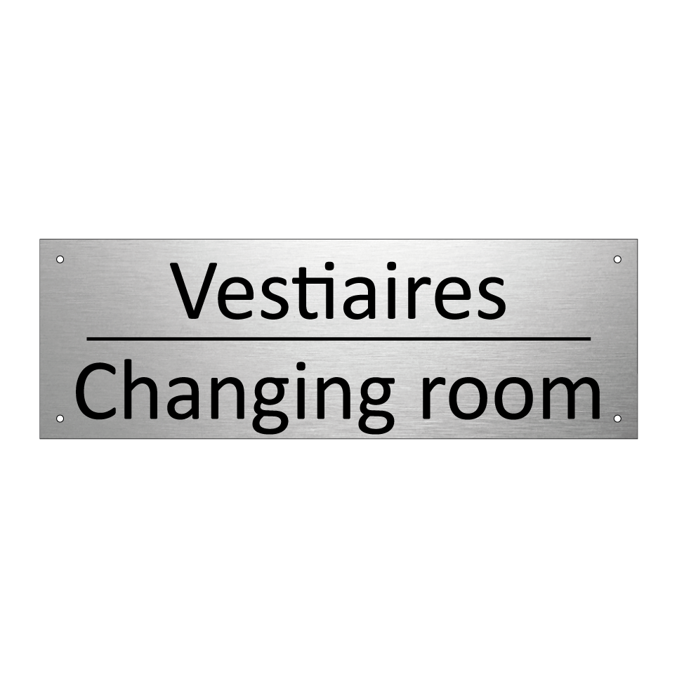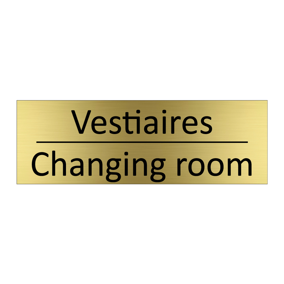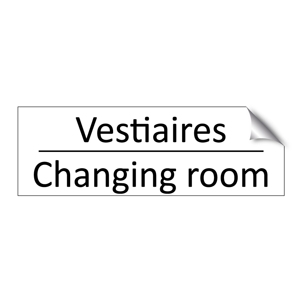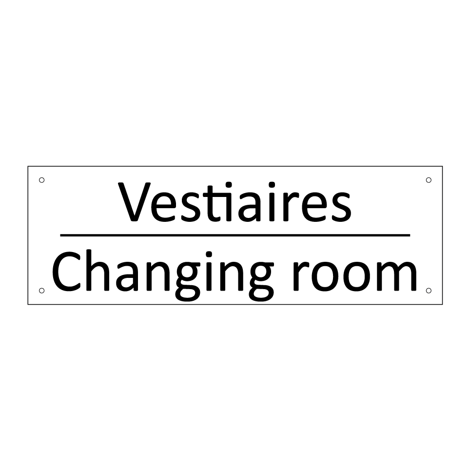 Panneau d'information avec le texte Vestiaires|Changing room en français et en anglais.
