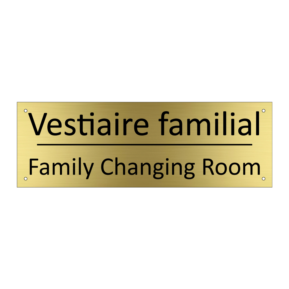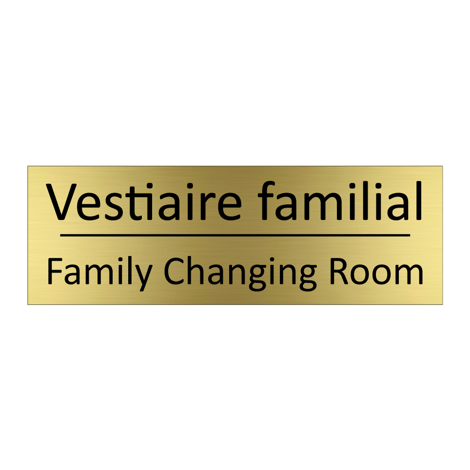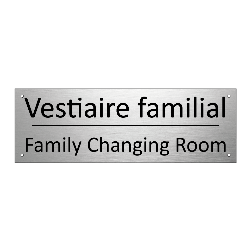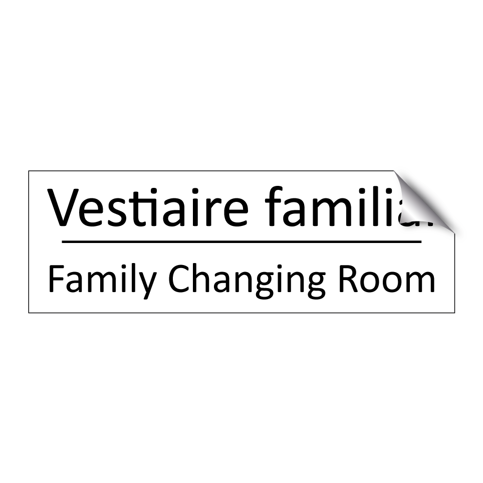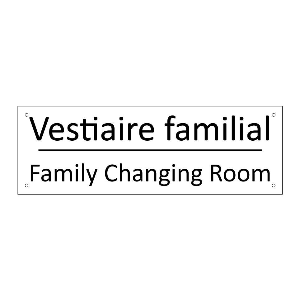 Panneau d'information avec le texte Vestiaire familial|Family Changing Room en français et en anglais.