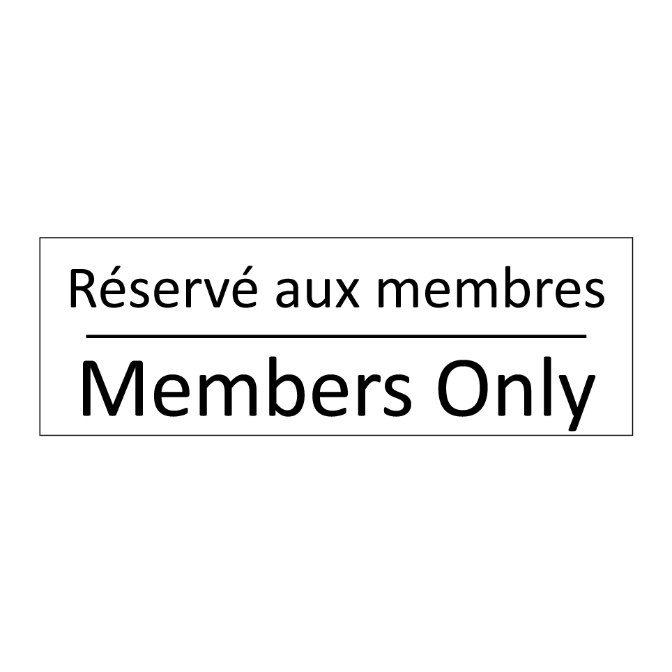 Panneau d'information avec le texte Réservé aux membres|Members Only en français et en anglais.