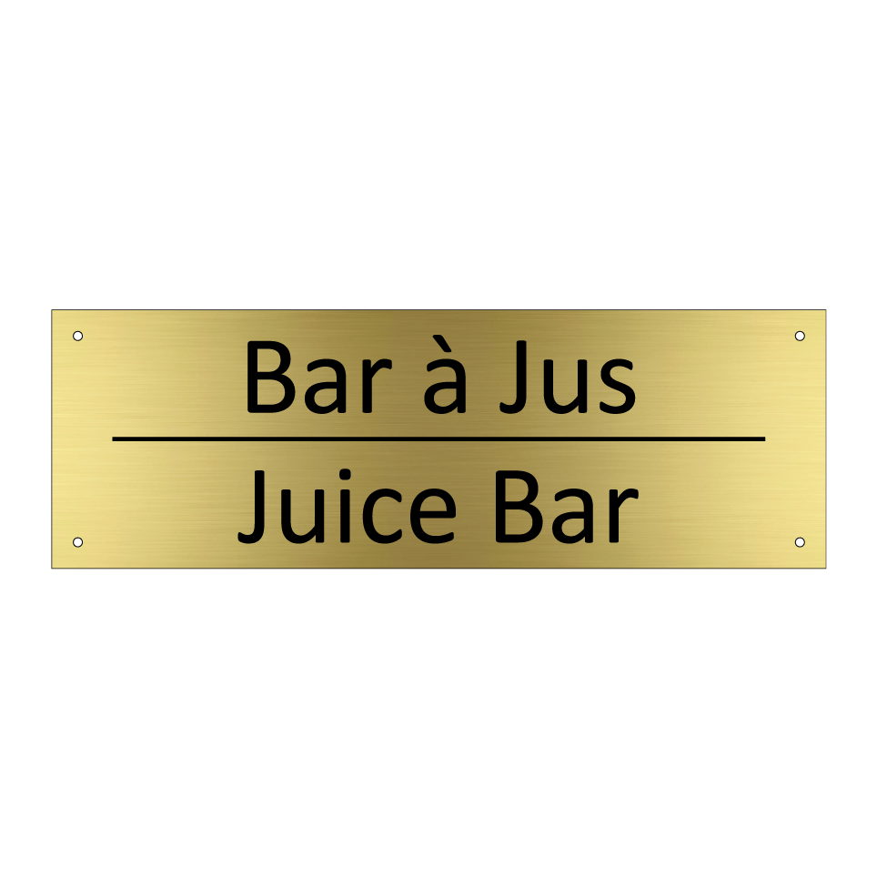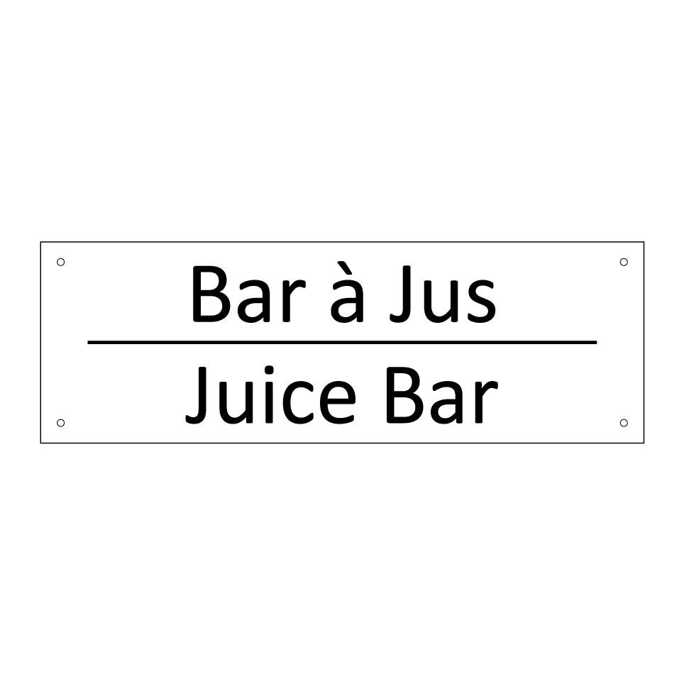 Panneau d'information avec le texte Bar à Jus|Juice Bar en français et en anglais.