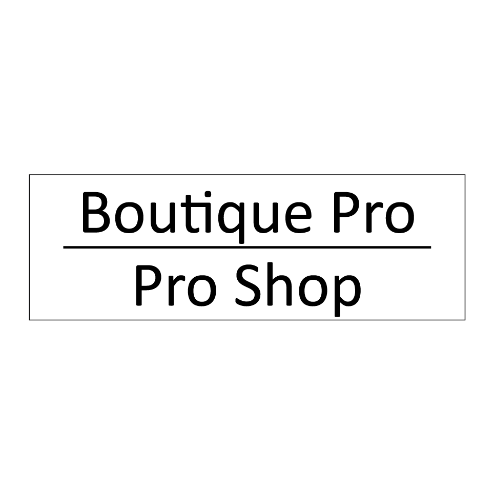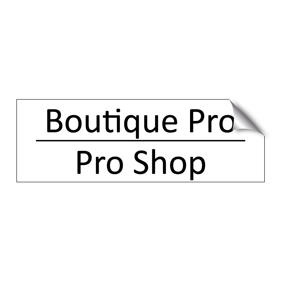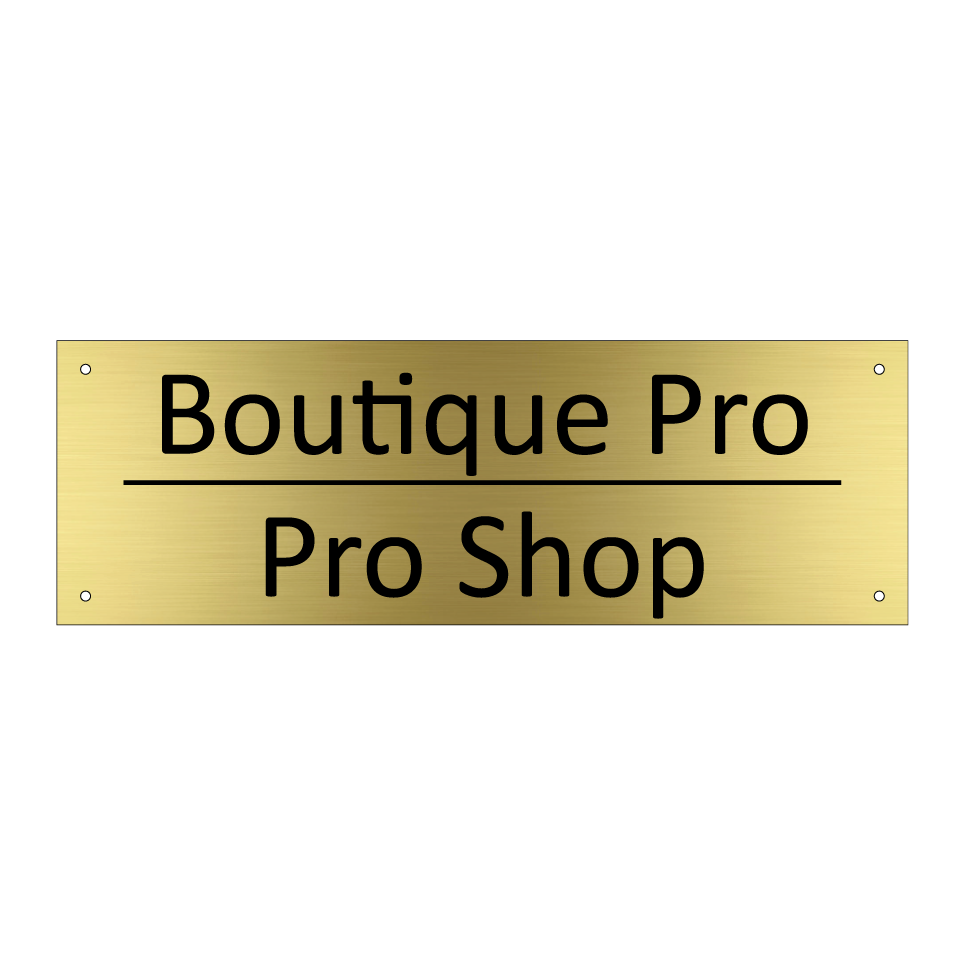 Panneau d'information avec le texte Boutique Pro|Pro Shop en français et en anglais.