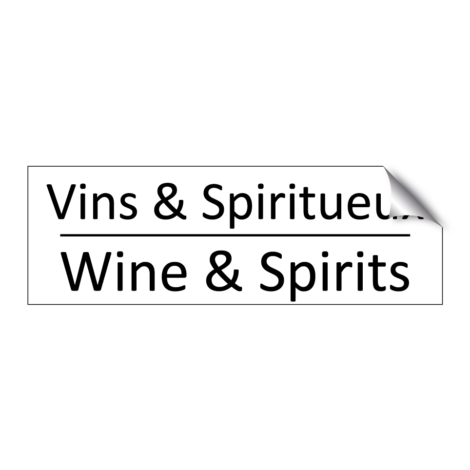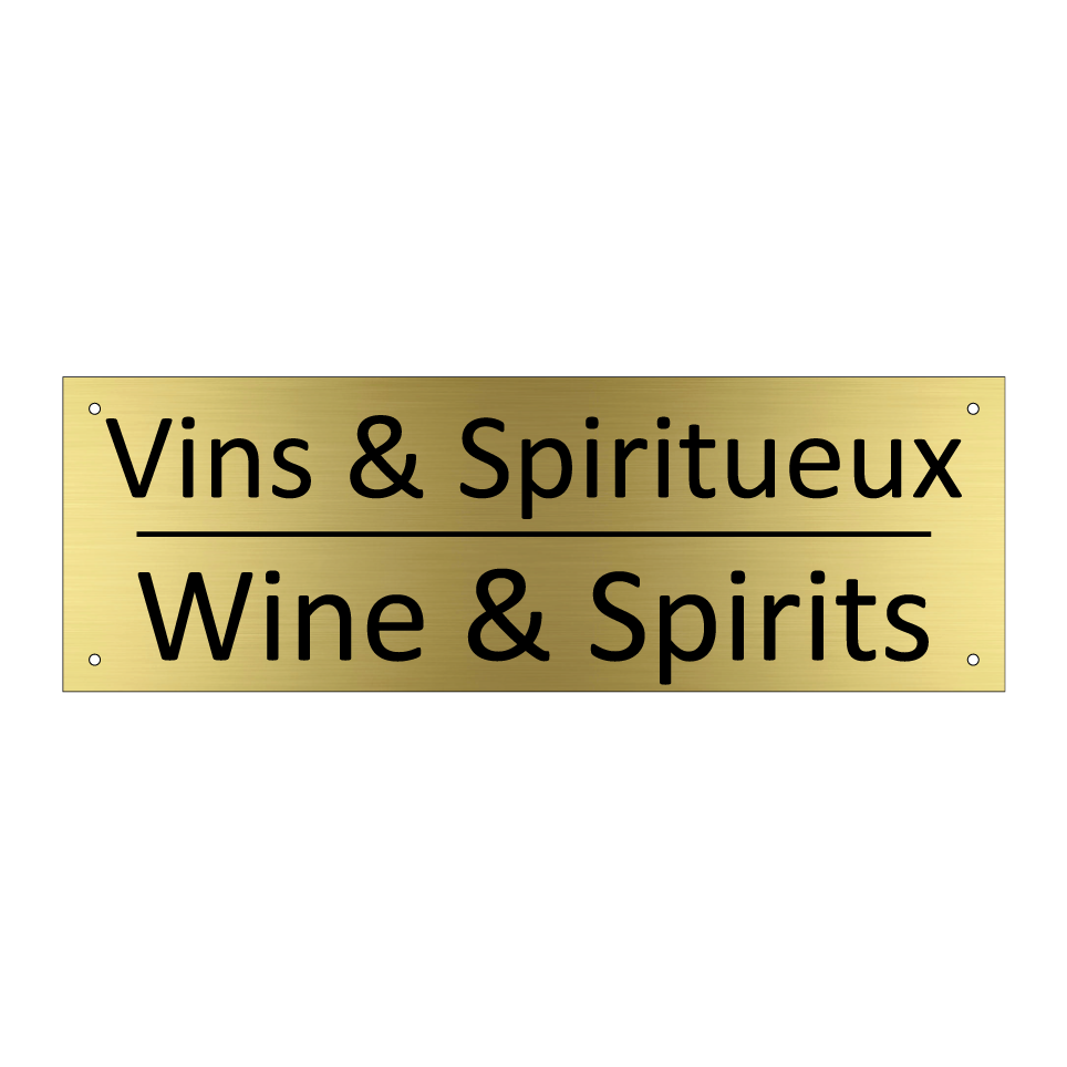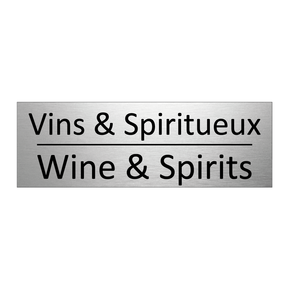 Panneau d'information avec le texte Vins & Spiritueux|Wine & Spirits en français et en anglais.