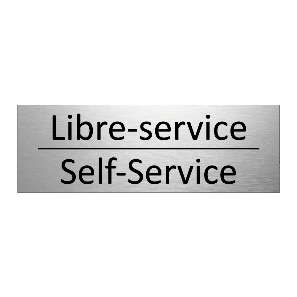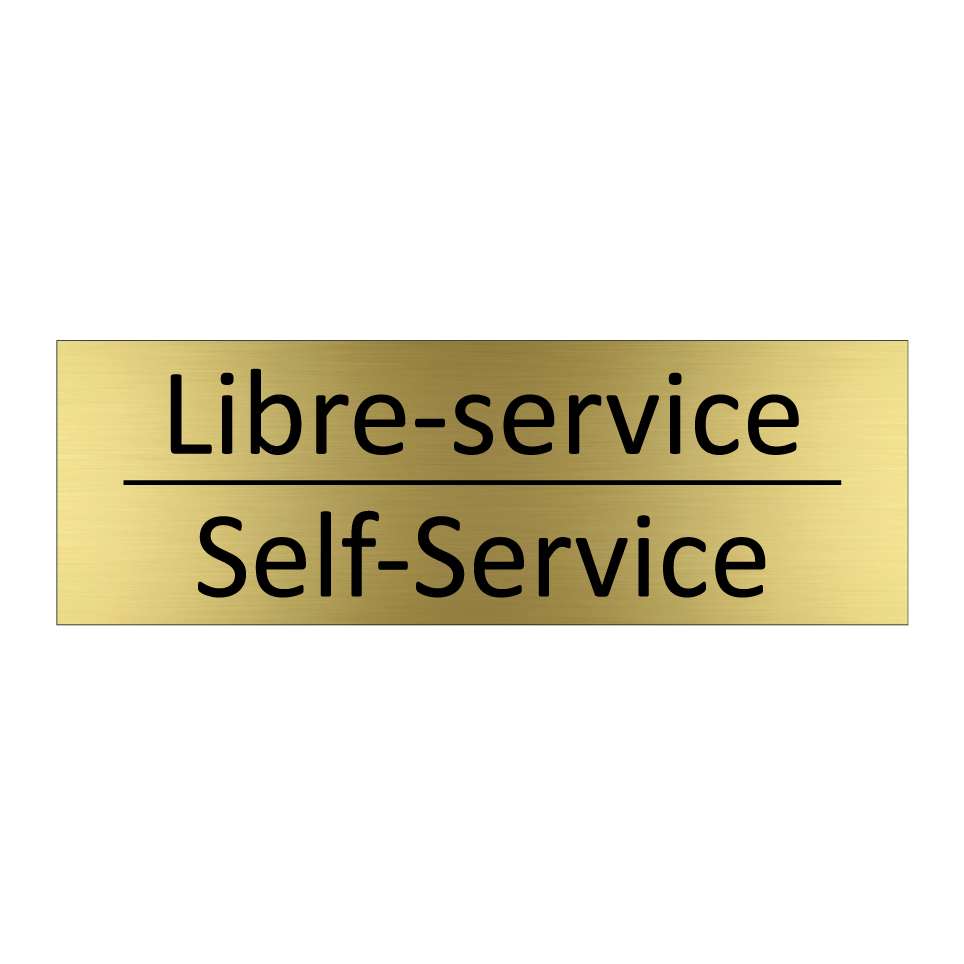 Panneau d'information avec le texte Libre-service|Self-Service en français et en anglais.