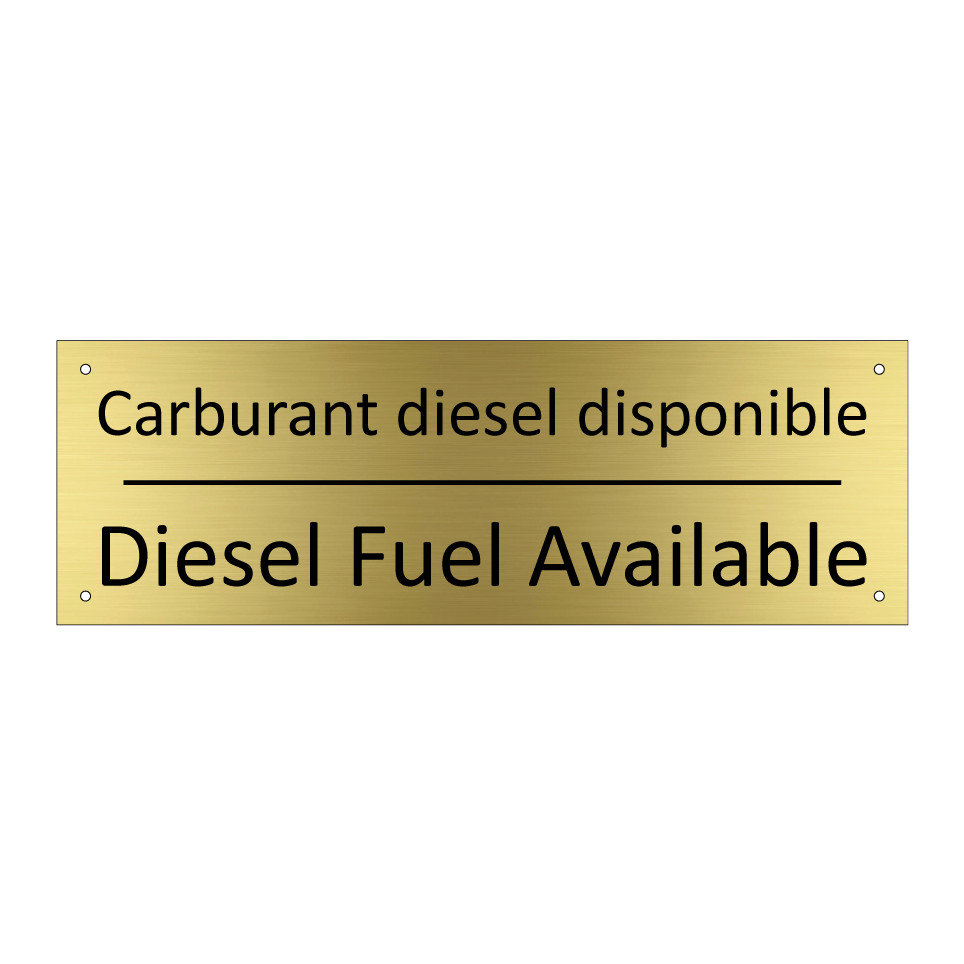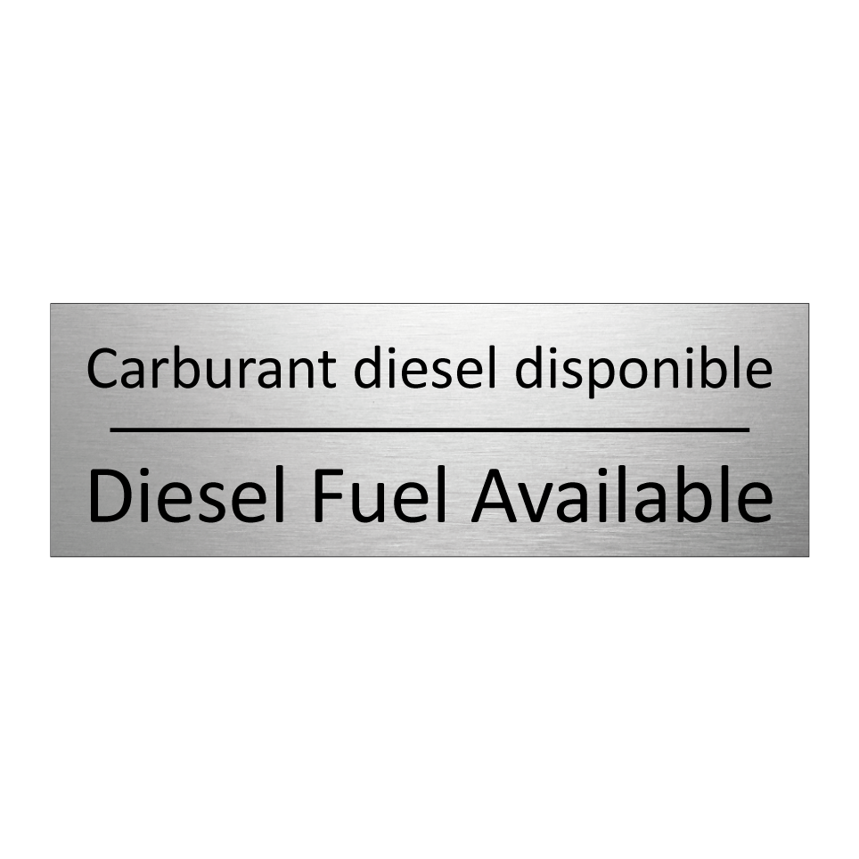 Panneau d'information avec le texte Carburant diesel disponible|Diesel Fuel Available en français et en anglais.