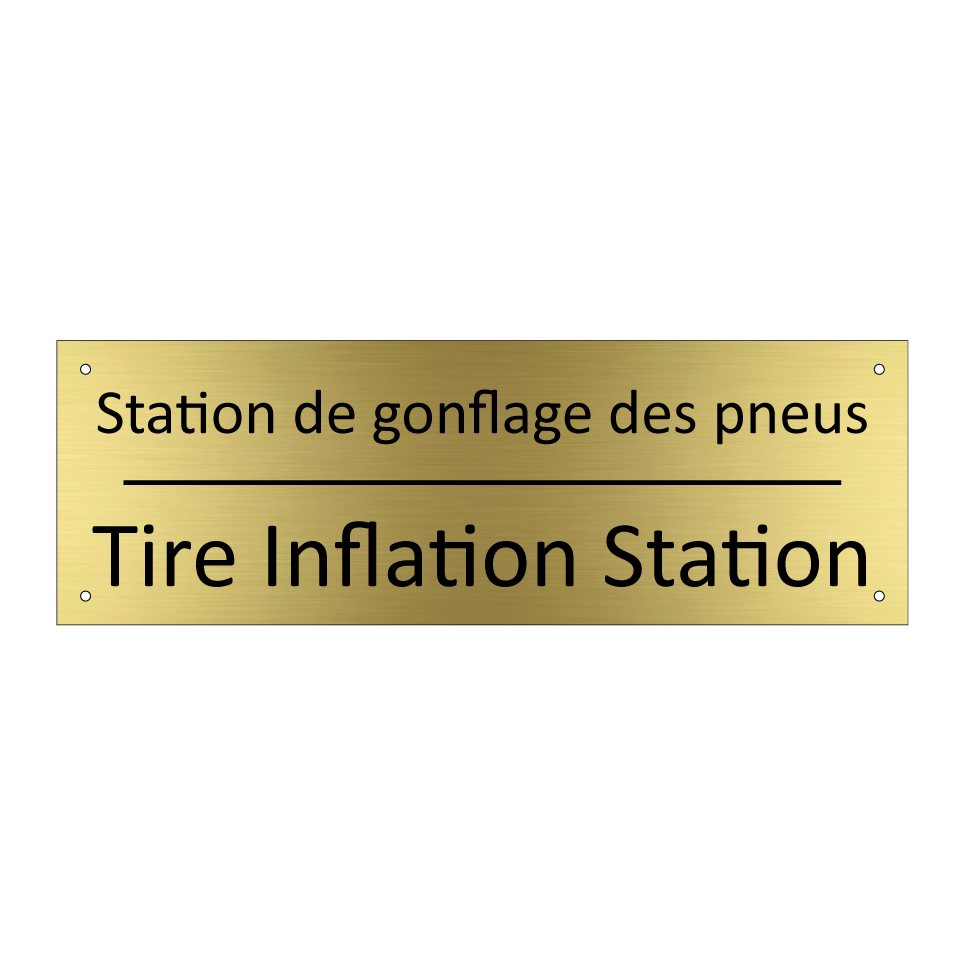 Panneau d'information avec le texte Station de gonflage des pneus|Tire Inflation Station en français et en anglais.
