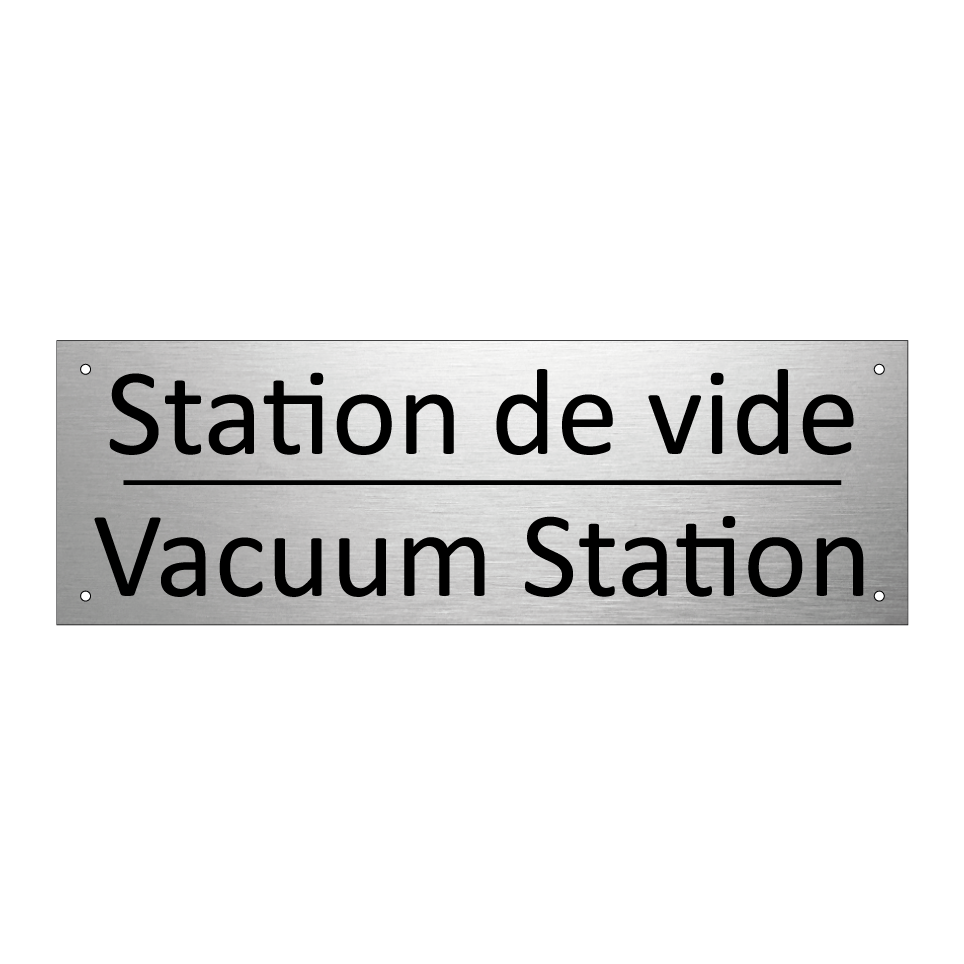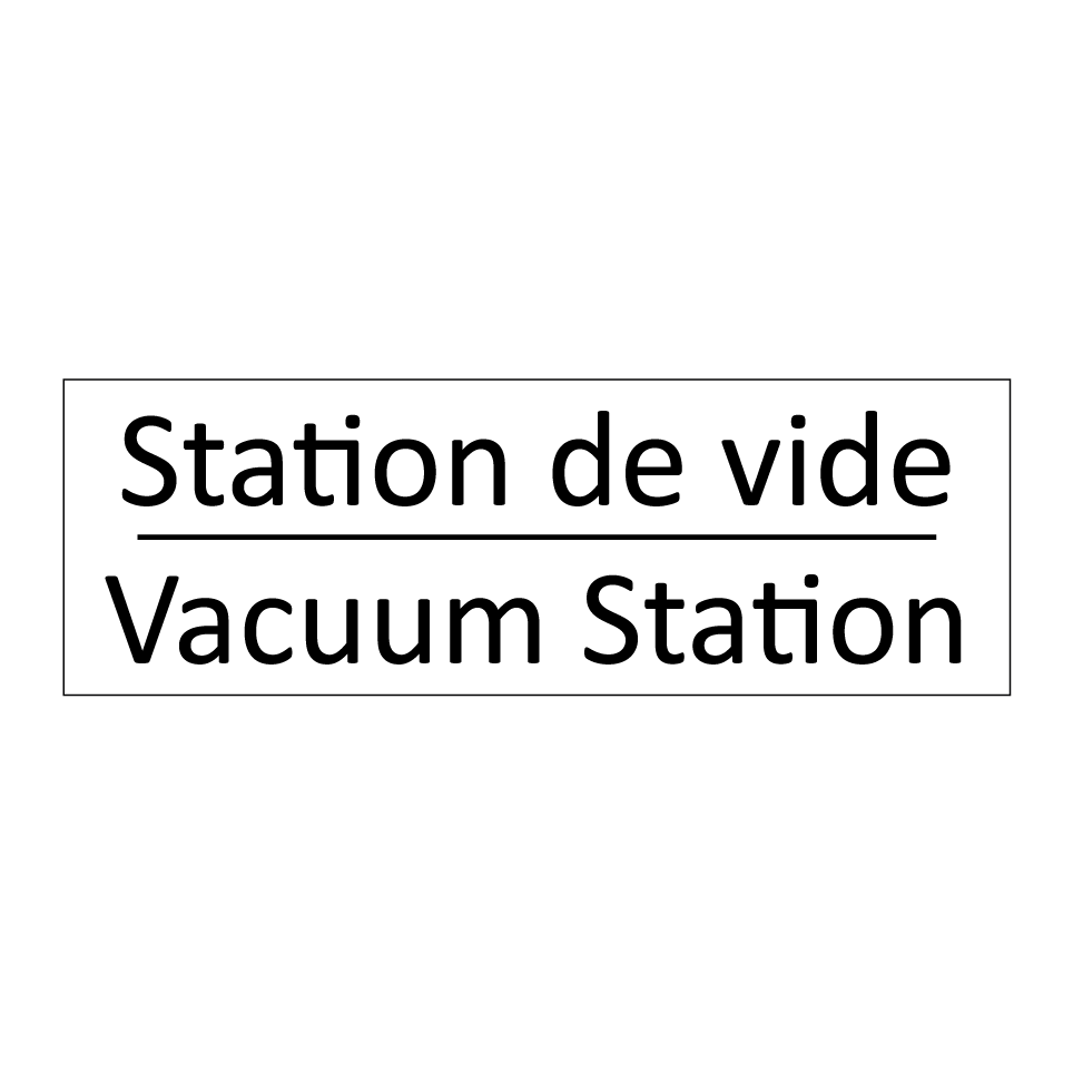 Panneau d'information avec le texte Station de vide|Vacuum Station en français et en anglais.