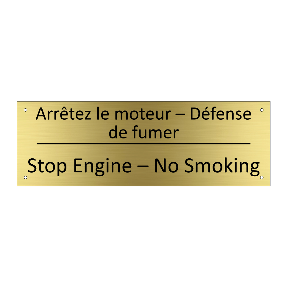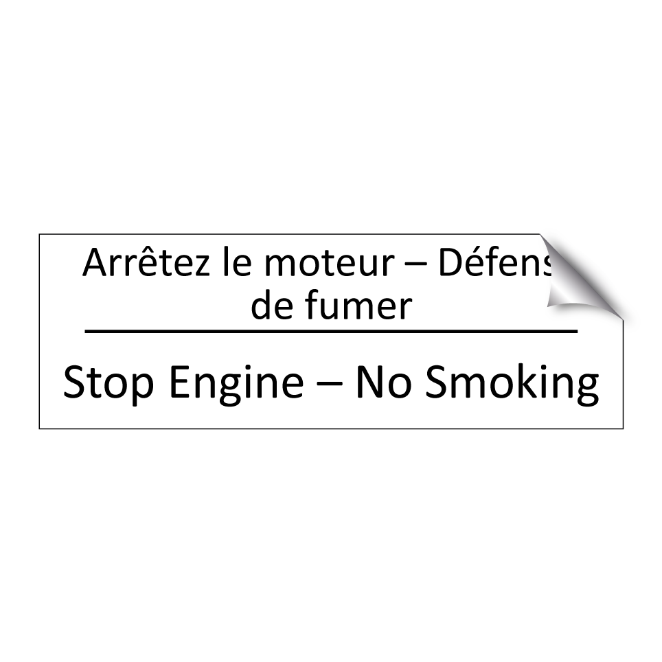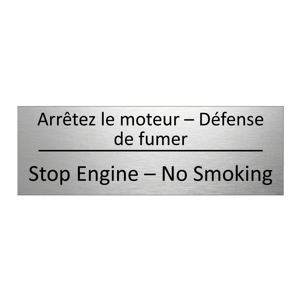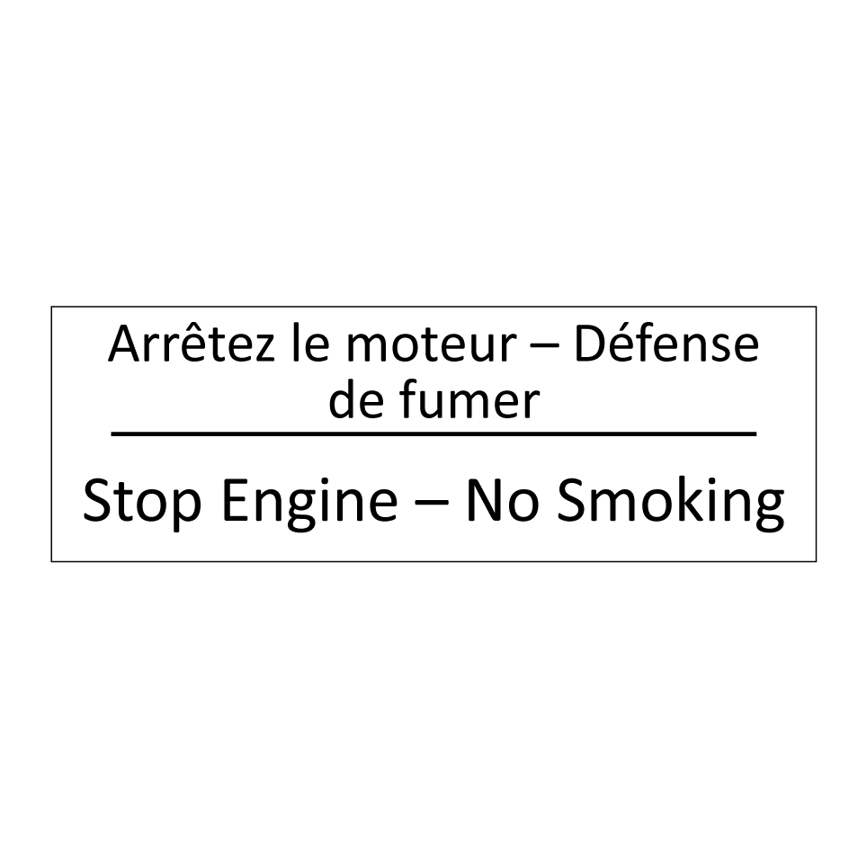 Panneau d'information avec le texte Arrêtez le moteur – Défense de fumer|Stop Engine – No Smoking en français et en anglais.