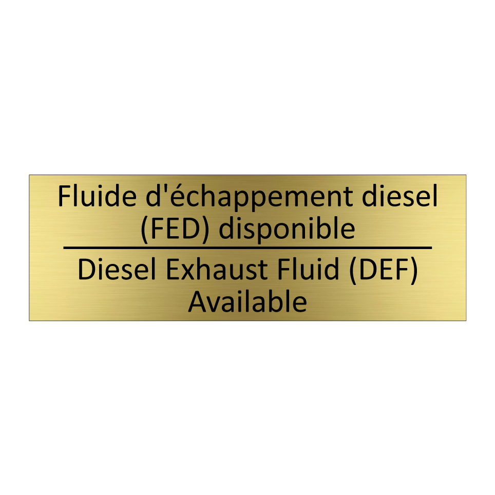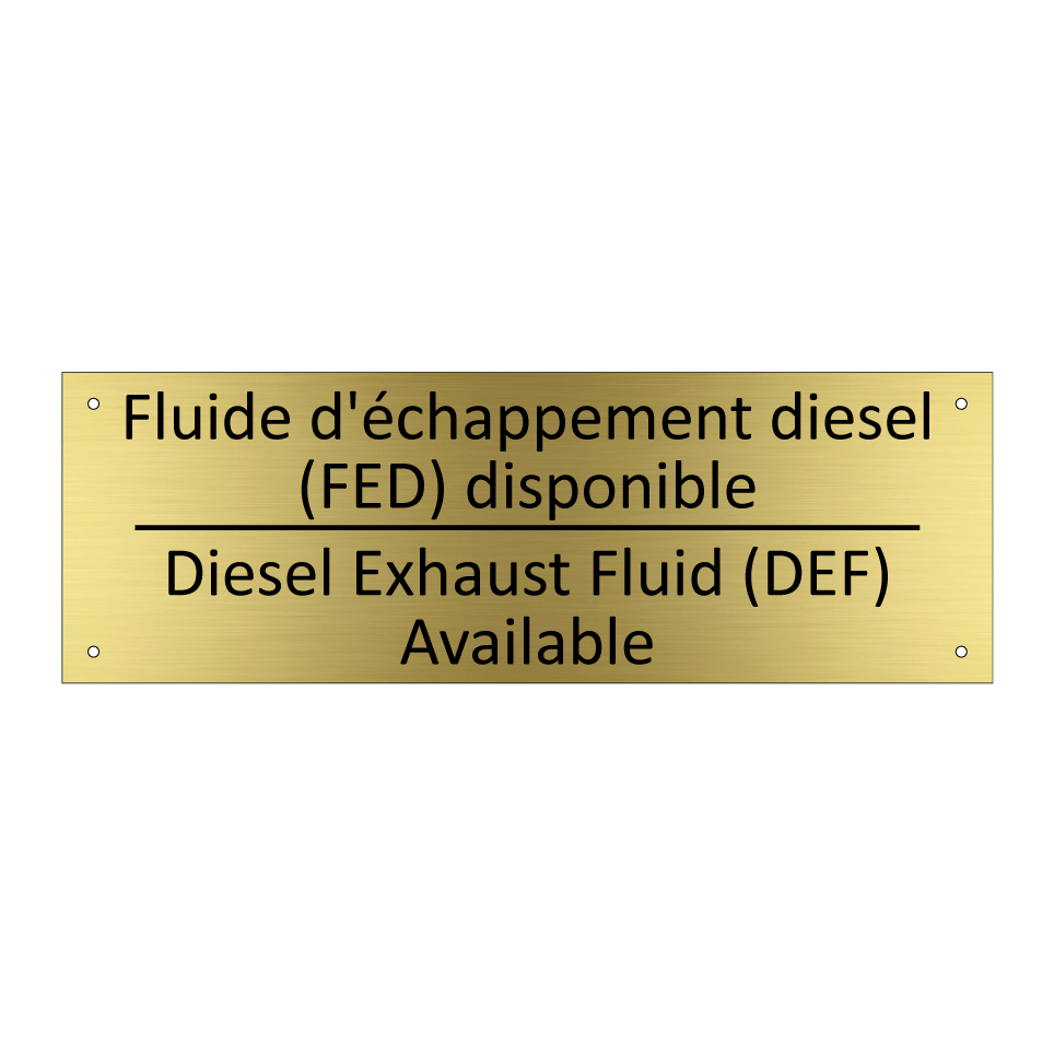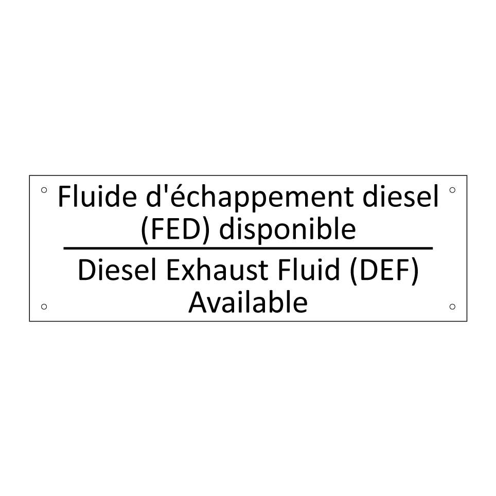 Panneau d'information avec le texte Fluide d'échappement diesel (FED) disponible|Diesel Exhaust Fluid (DEF) Available en français et en anglais.