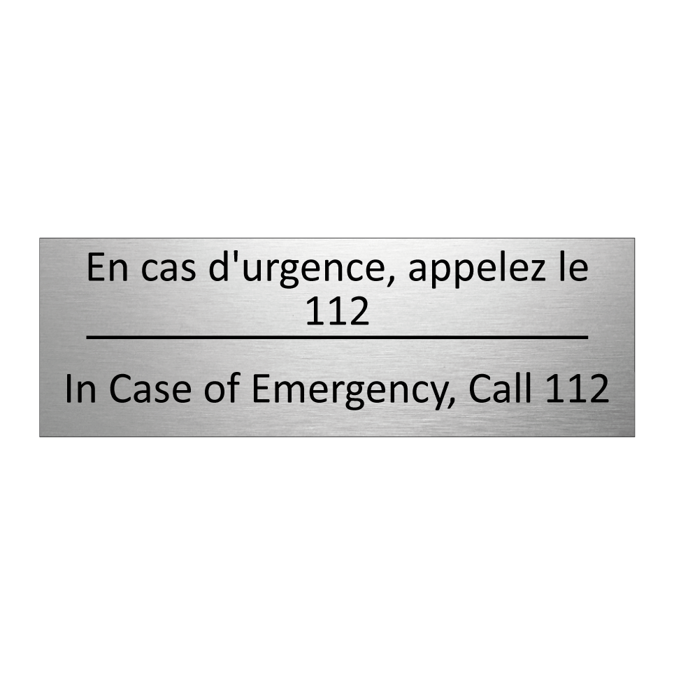 Panneau d'information avec le texte En cas d'urgence, appelez le 112|In Case of Emergency, Call 112 en français et en anglais.