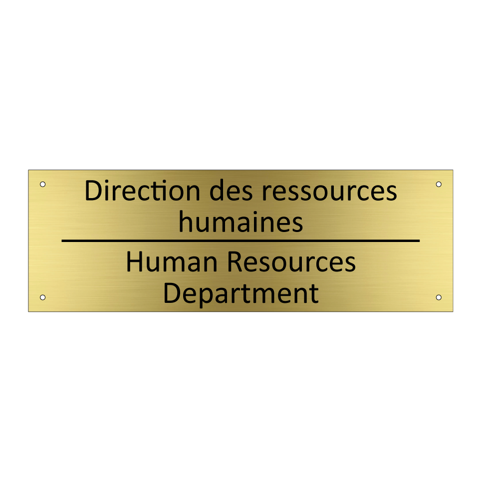 Panneau d'information avec le texte Direction des ressources humaines|Human Resources Department en français et en anglais.