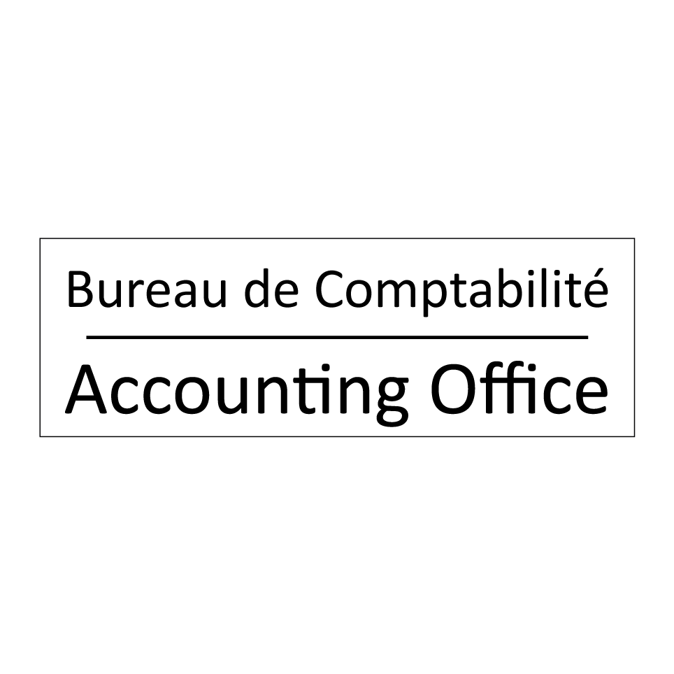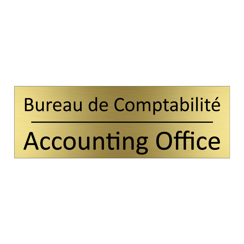 Panneau d'information avec le texte Bureau de Comptabilité|Accounting Office en français et en anglais.