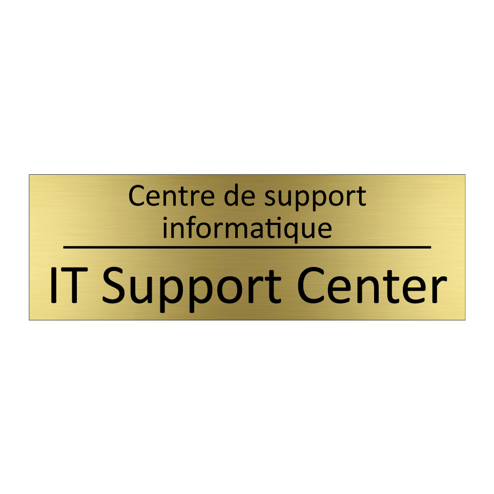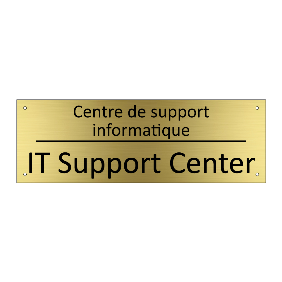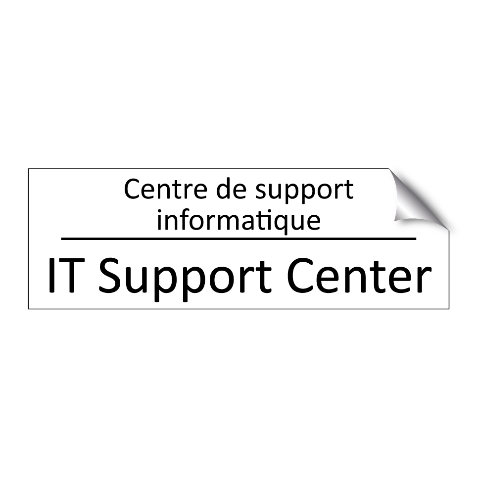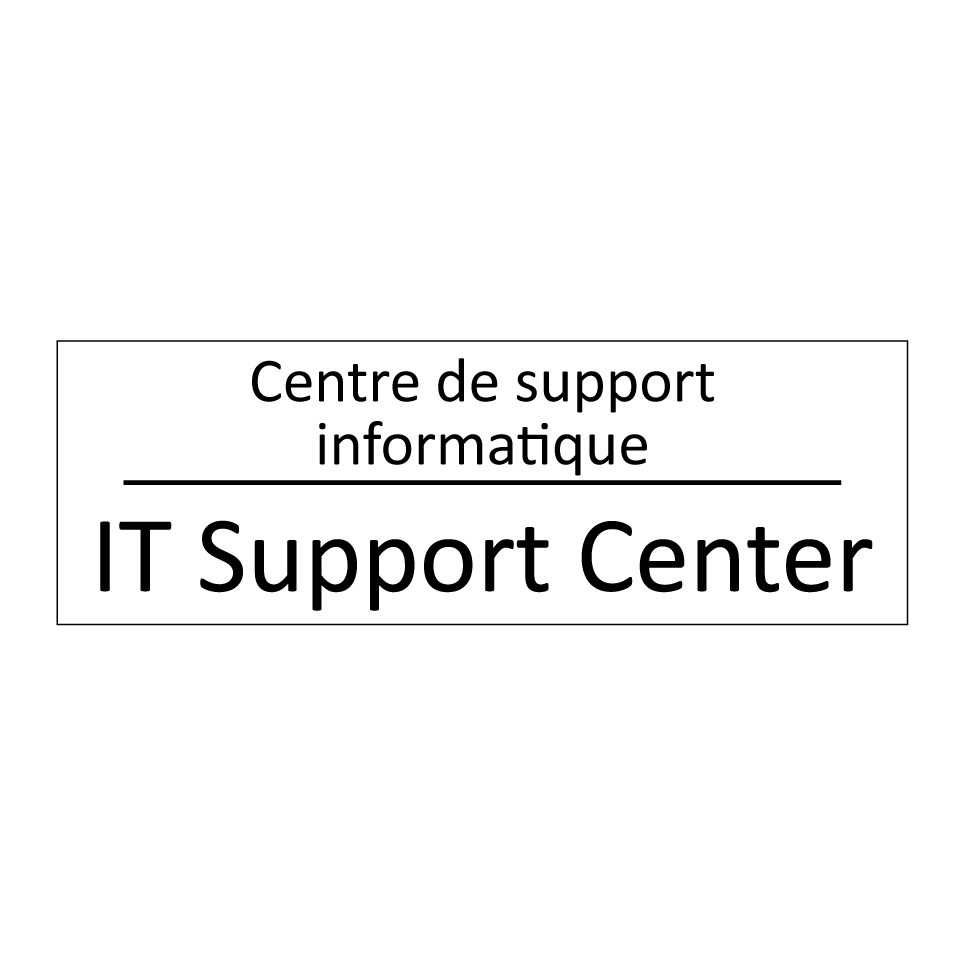 Panneau d'information avec le texte Centre de support informatique|IT Support Center en français et en anglais.