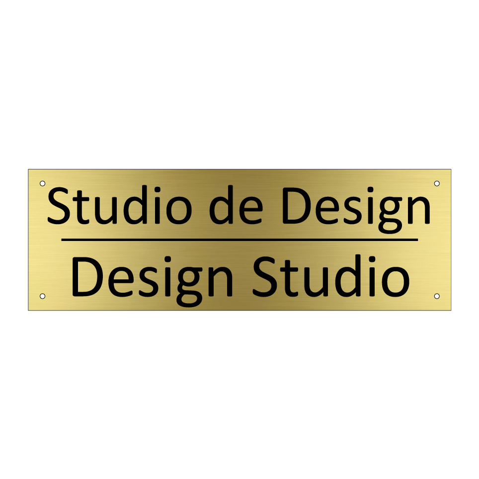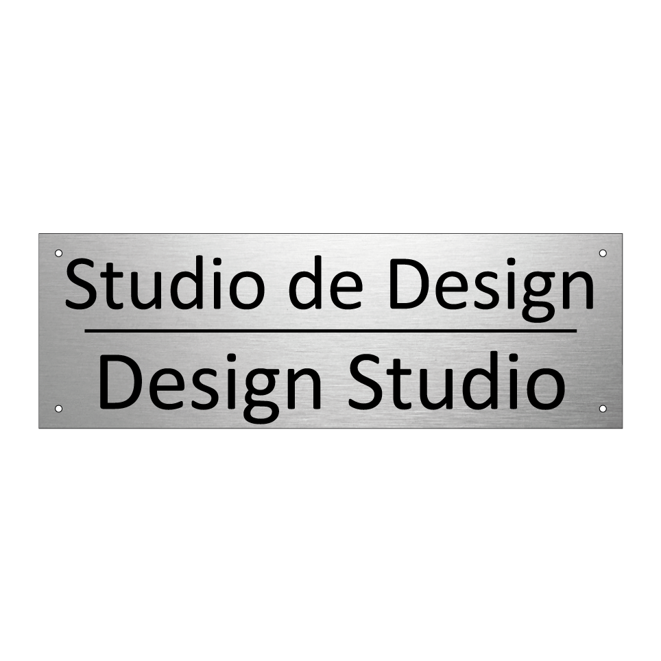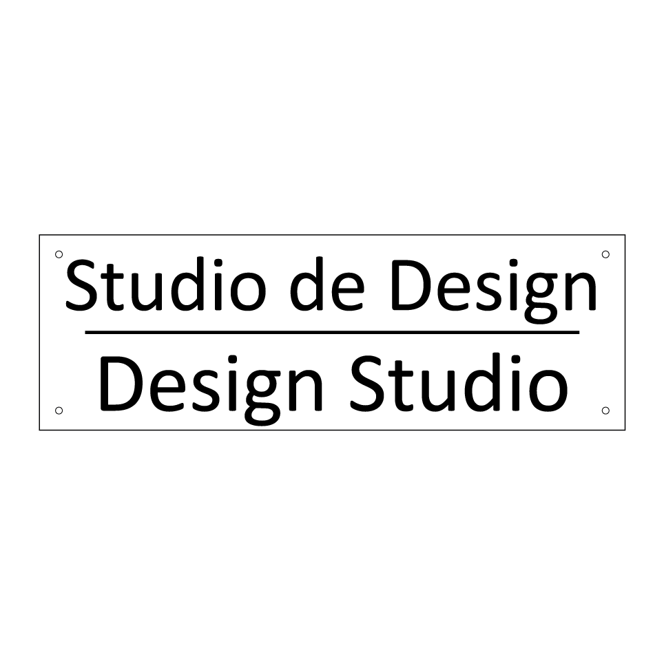 Panneau d'information avec le texte Studio de Design|Design Studio en français et en anglais.