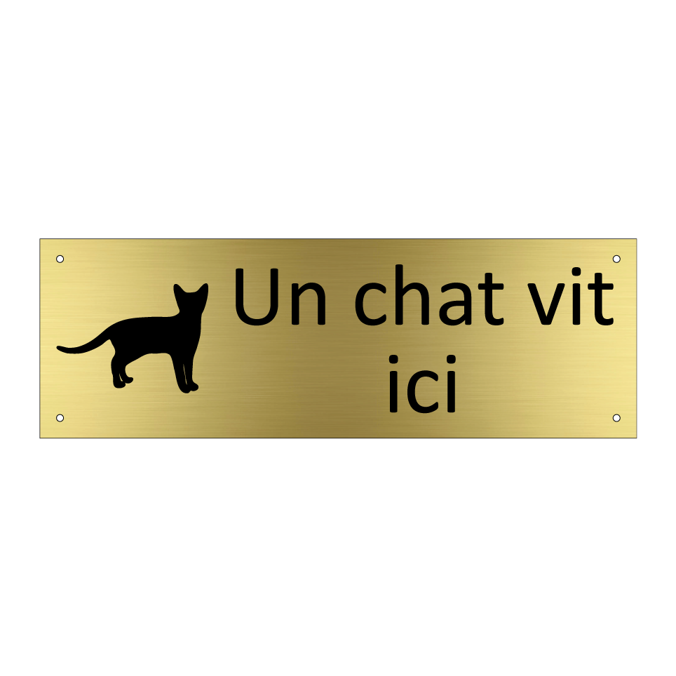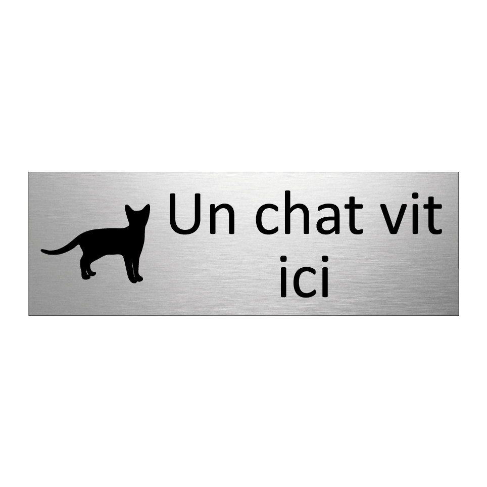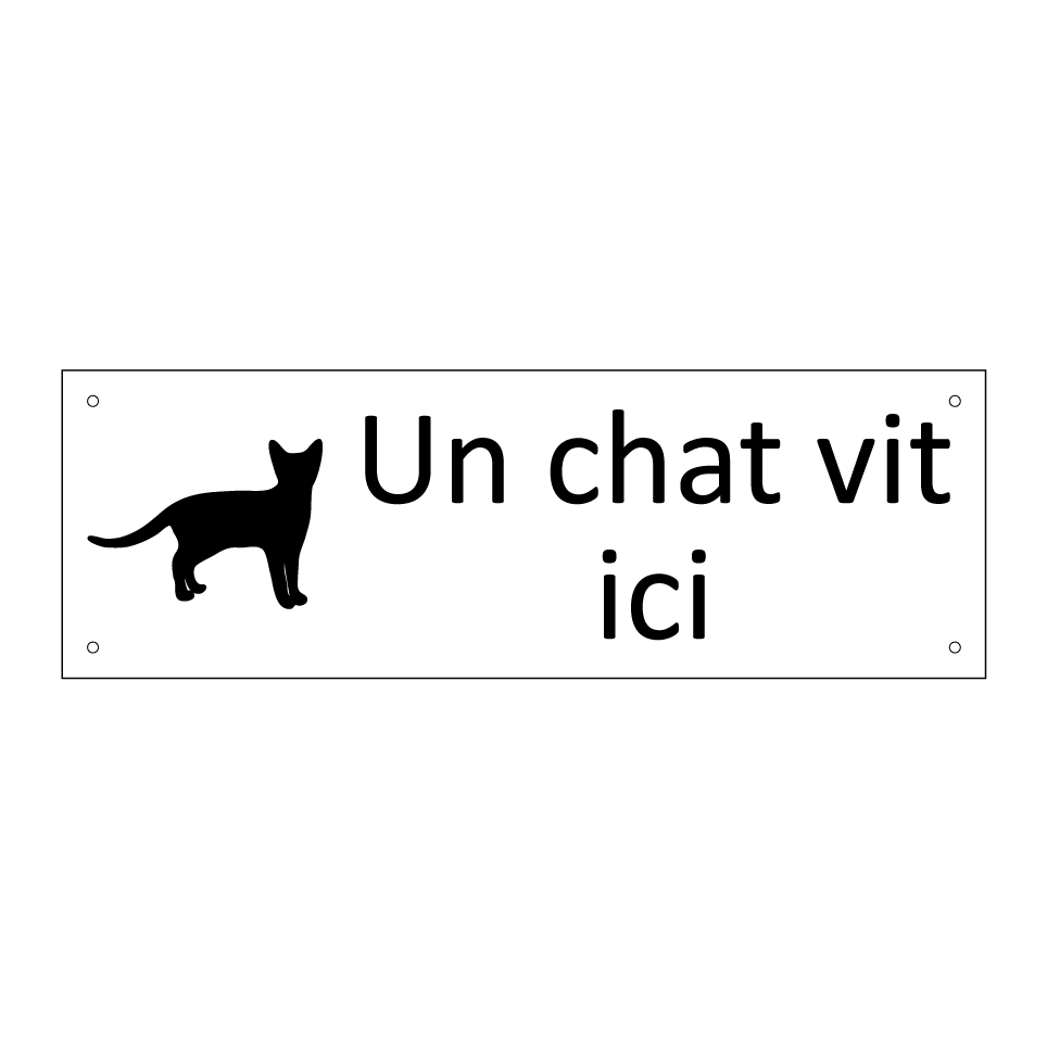 Panneau d'information avec le texte Un chat vit ici et une symbolique claire pour une meilleure visibilité.