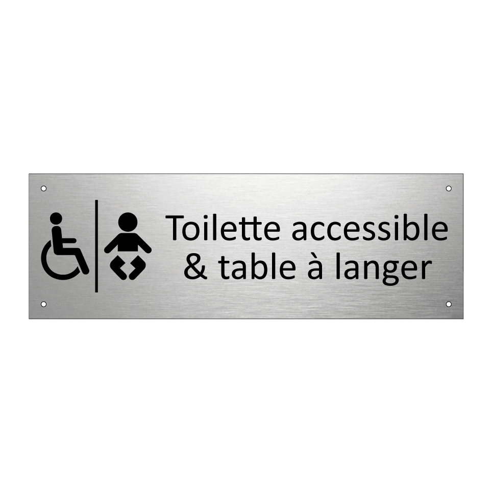 Panneau d'information avec le texte Toilette accessible & table à langer et une symbolique claire pour une meilleure visibilité.