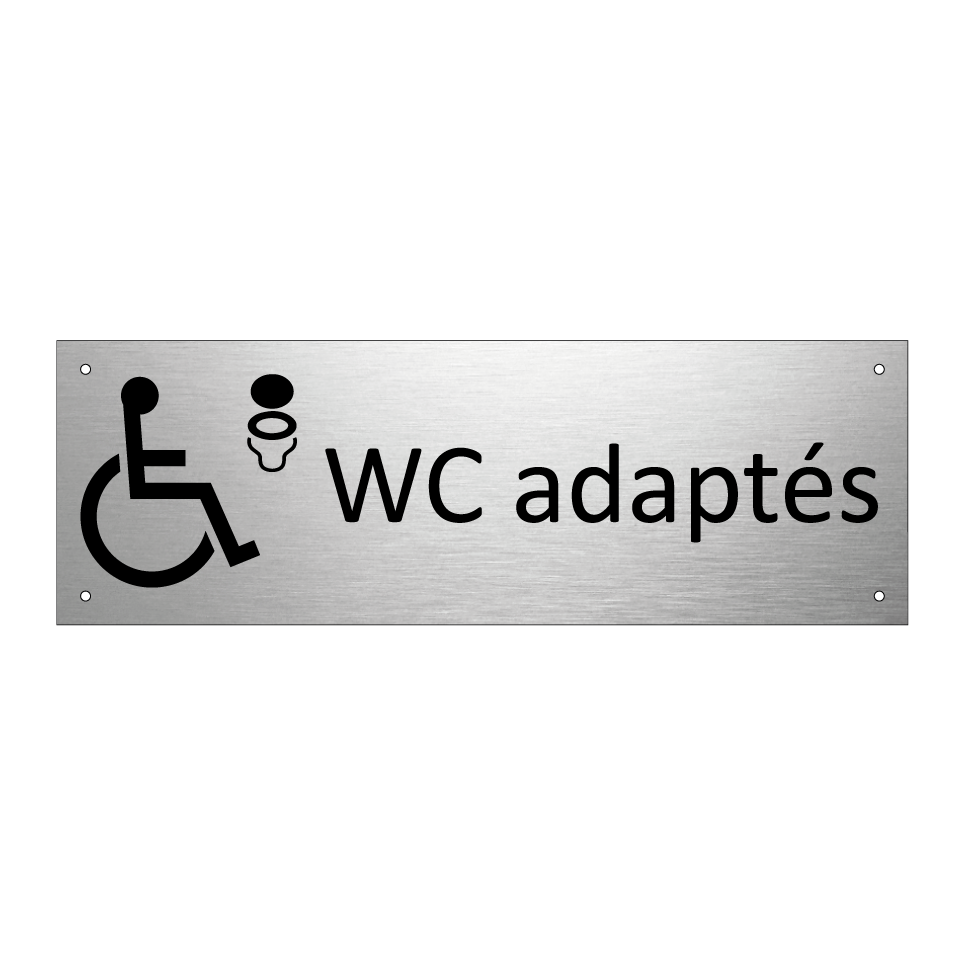 Panneau d'information avec le texte WC adaptés et une symbolique claire pour une meilleure visibilité.