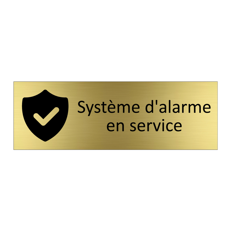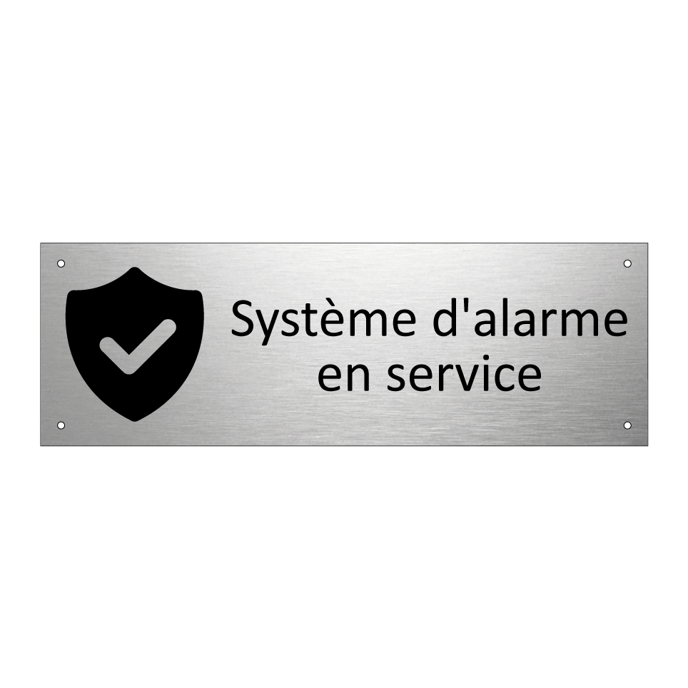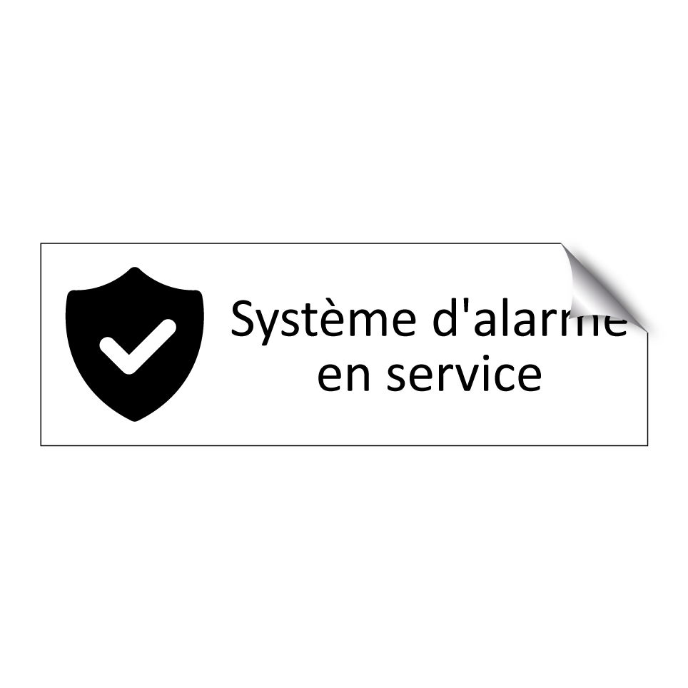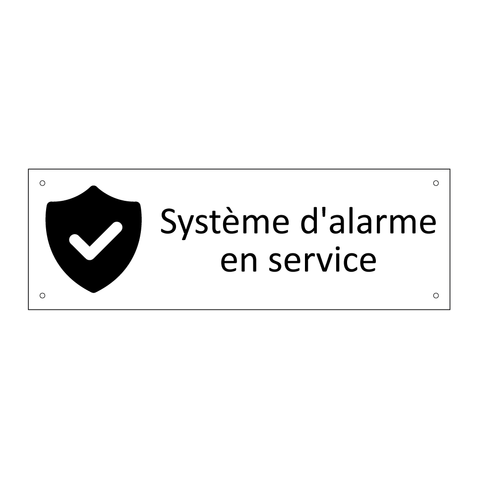 Panneau d'information avec le texte Système d'alarme en service et une symbolique claire pour une meilleure visibilité.