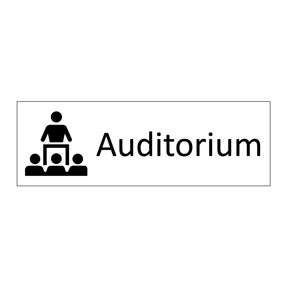 Panneau d'information avec le texte Auditorium et une symbolique claire pour une meilleure visibilité.