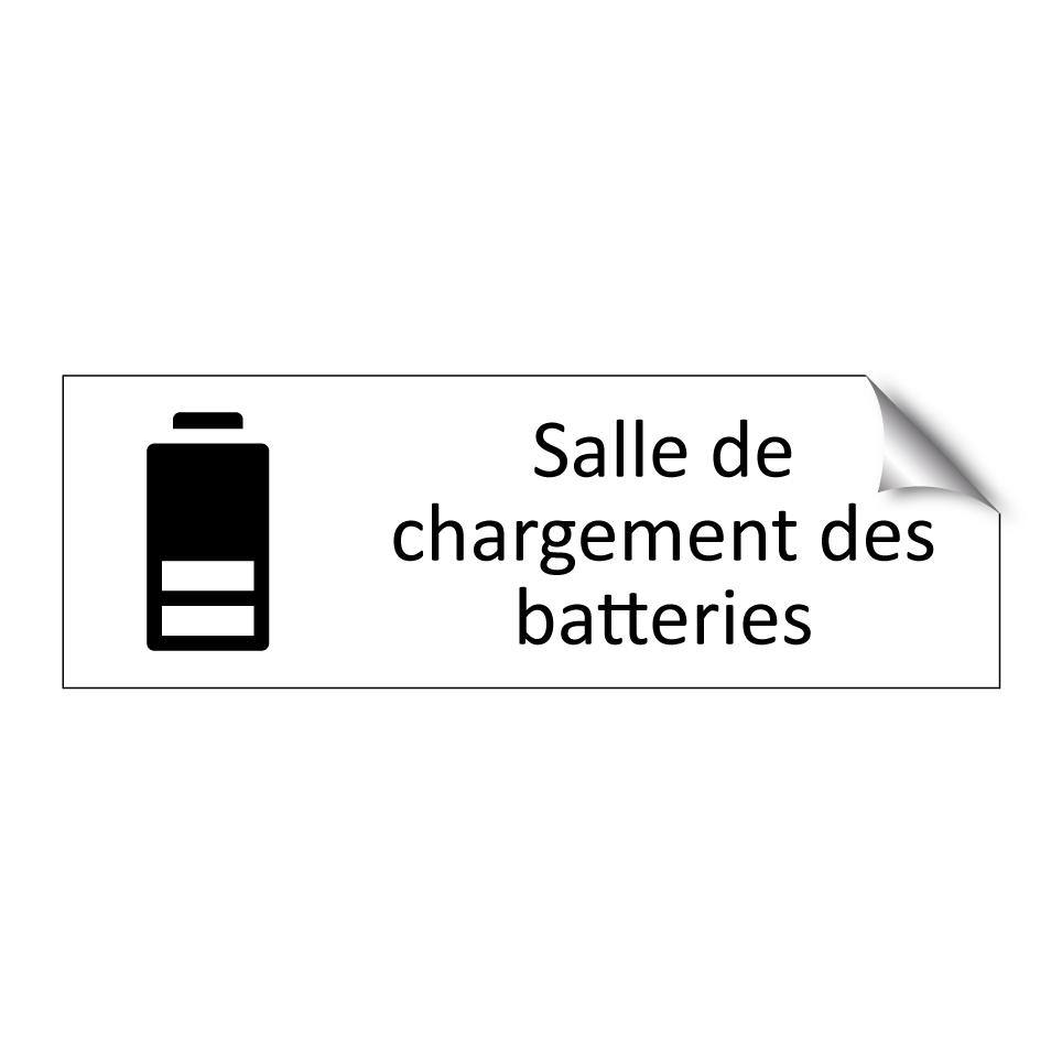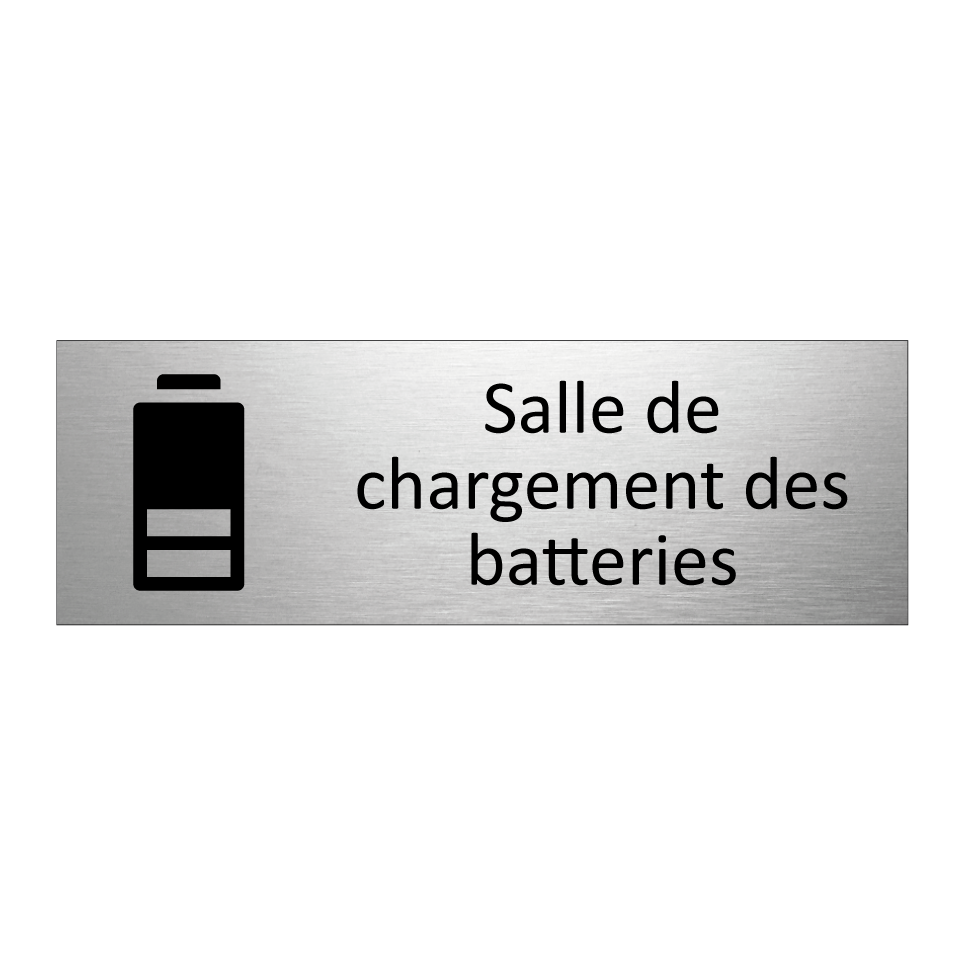 Panneau d'information avec le texte Salle de chargement des batteries et une symbolique claire pour une meilleure visibilité.
