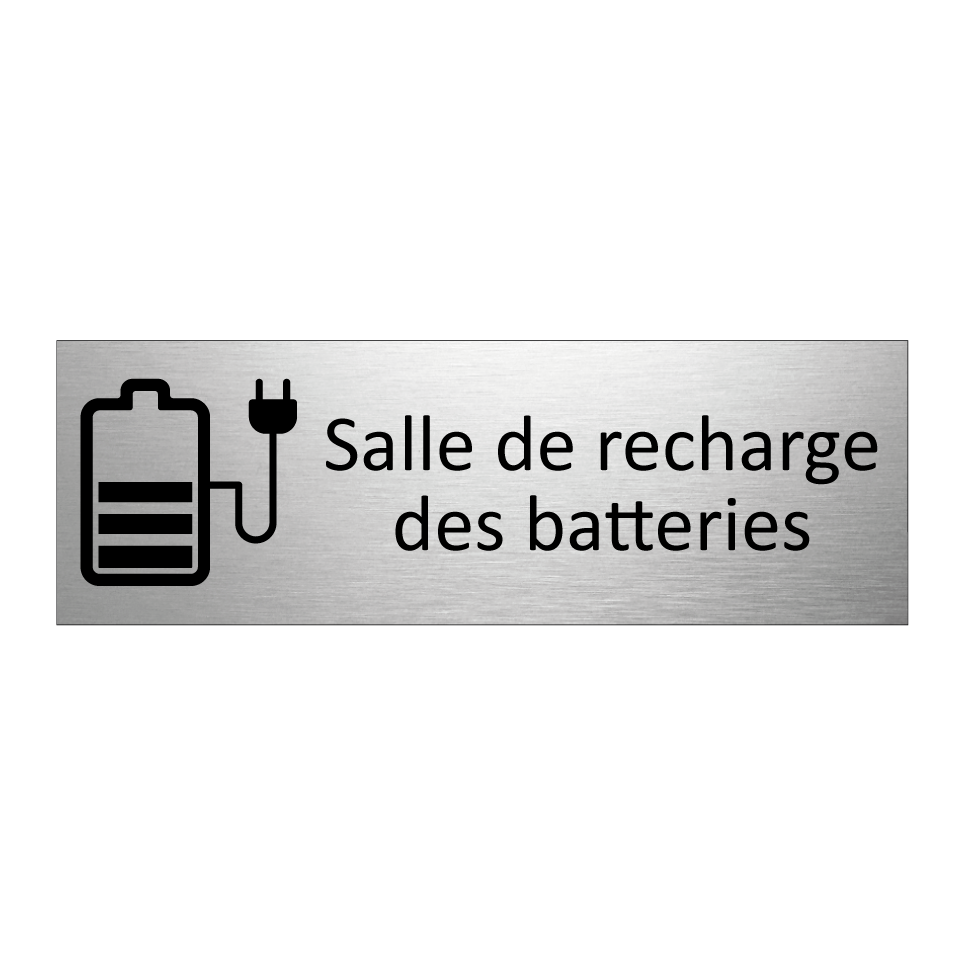 Panneau d'information avec le texte Salle de recharge des batteries et une symbolique claire pour une meilleure visibilité.
