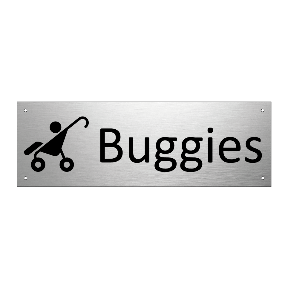 Panneau d'information avec le texte Buggies et une symbolique claire pour une meilleure visibilité.
