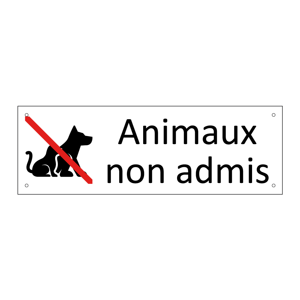 Panneau d'information avec le texte Animaux non admis et une symbolique claire pour une meilleure visibilité.