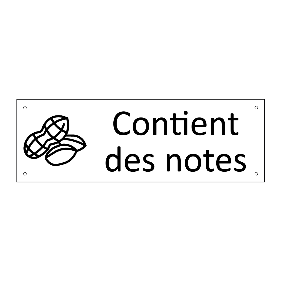 Panneau d'information avec le texte Contient des notes et une symbolique claire pour une meilleure visibilité.