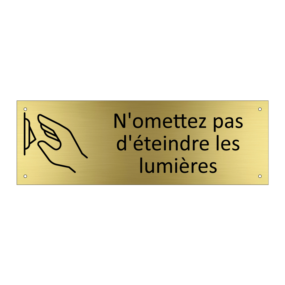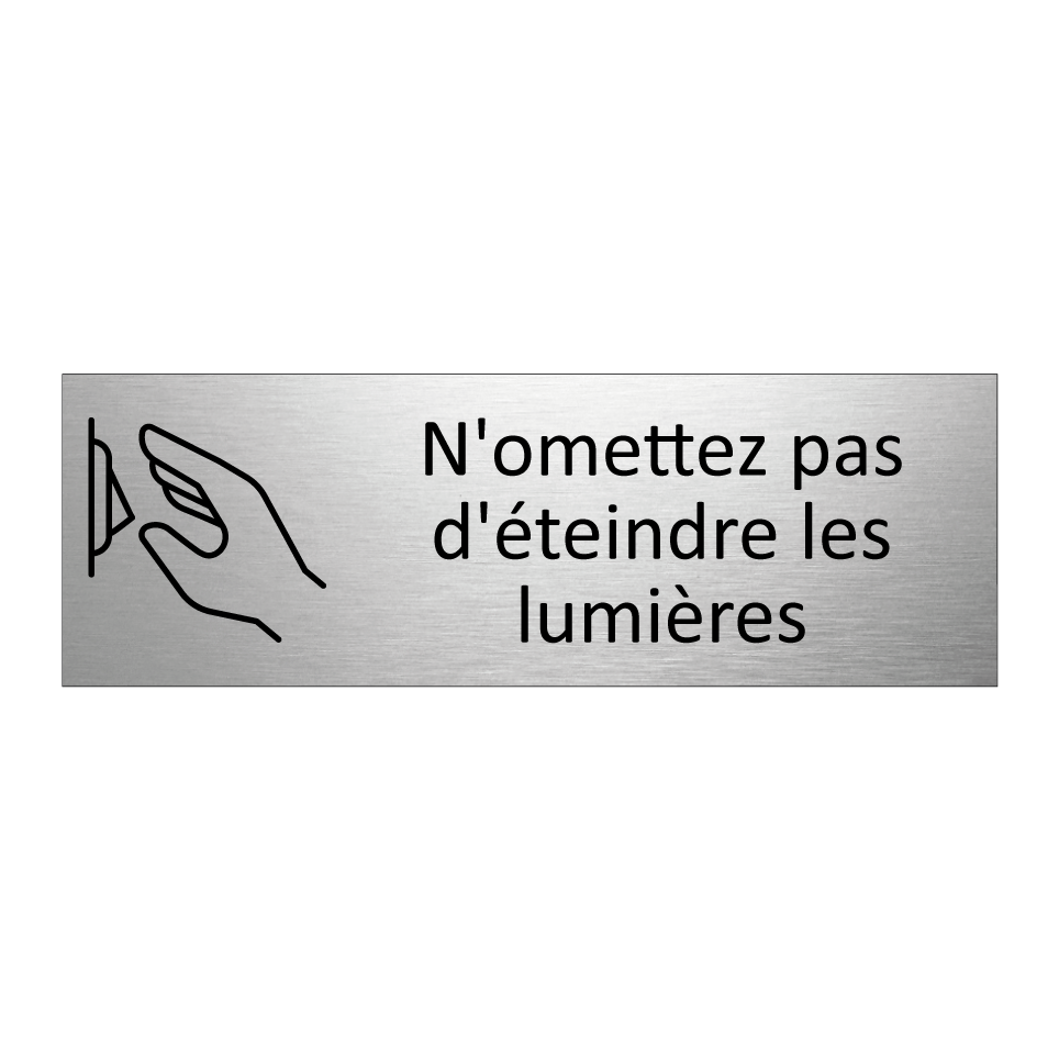 Panneau d'information avec le texte N'omettez pas d'éteindre les lumières et une symbolique claire pour une meilleure visibilité.