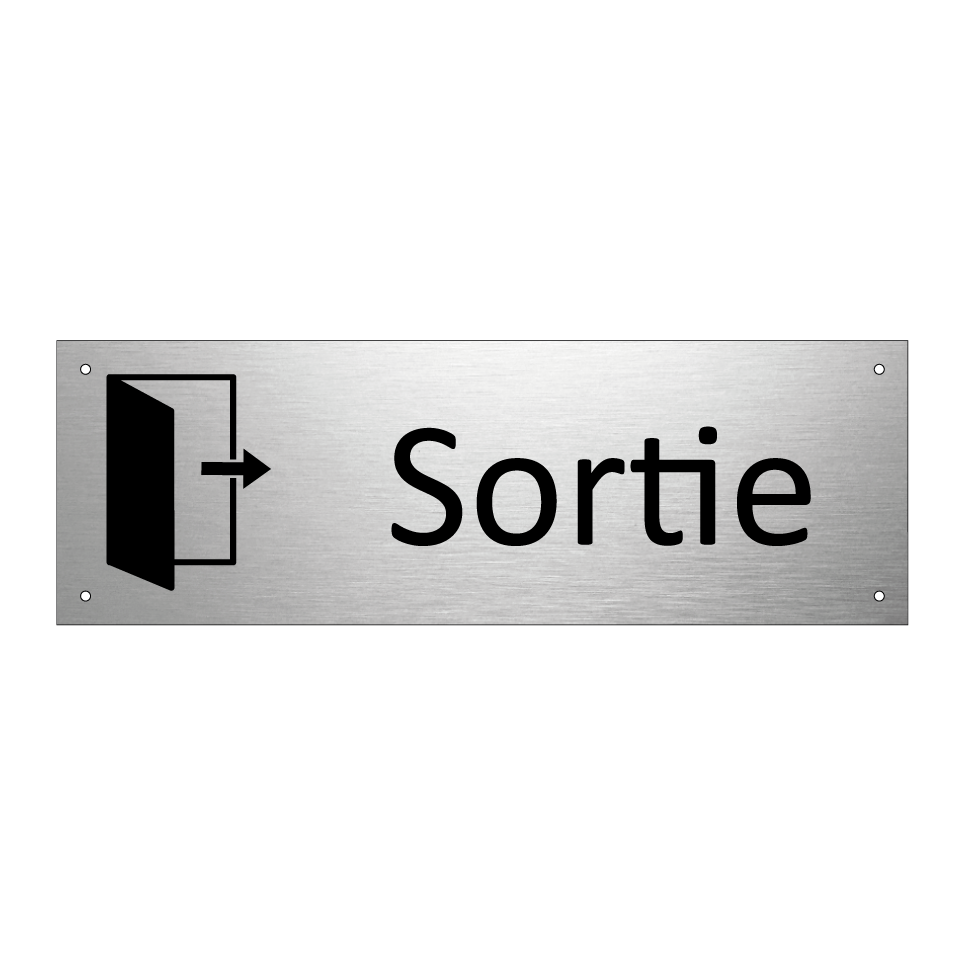 Panneau d'information avec le texte Sortie et une symbolique claire pour une meilleure visibilité.