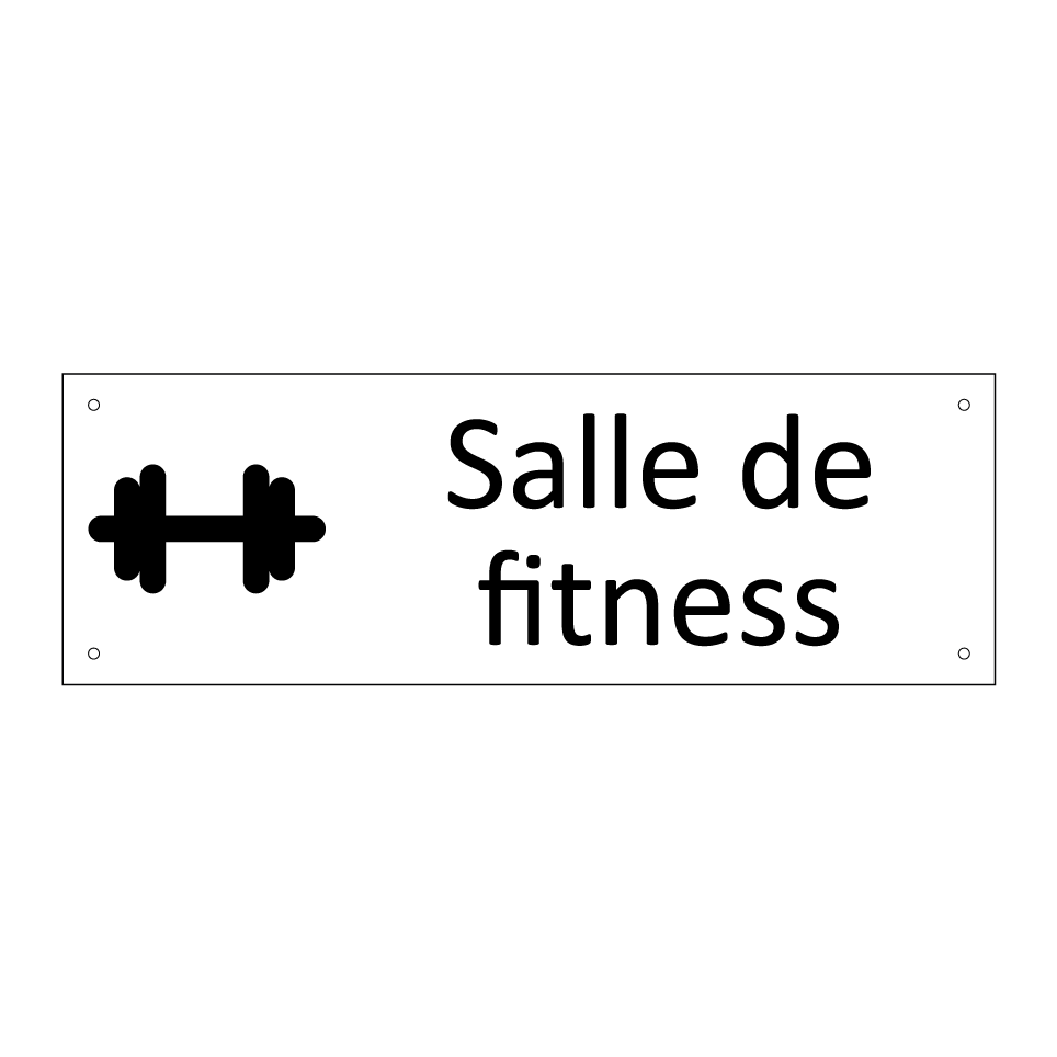 Panneau d'information avec le texte Salle de fitness et une symbolique claire pour une meilleure visibilité.