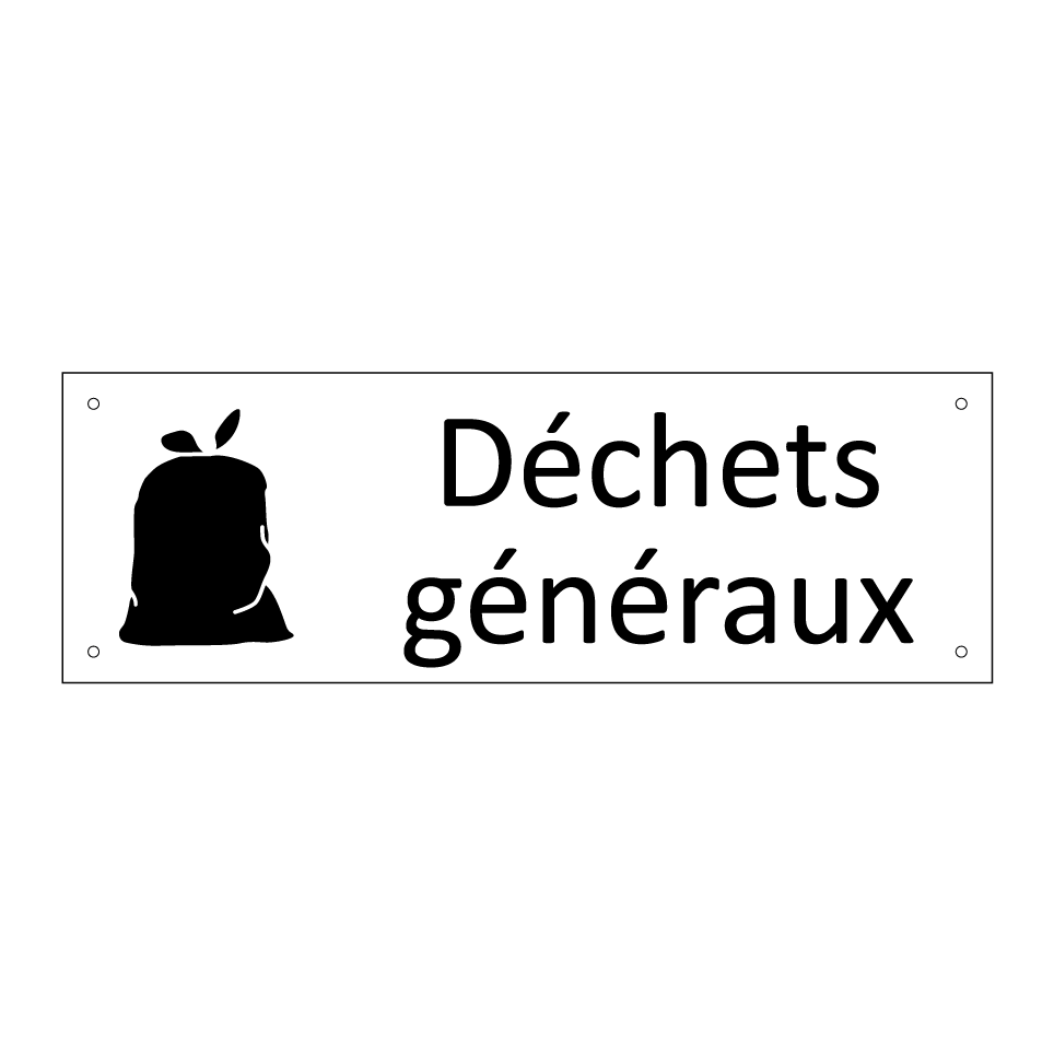 Panneau d'information avec le texte Déchets généraux et une symbolique claire pour une meilleure visibilité.