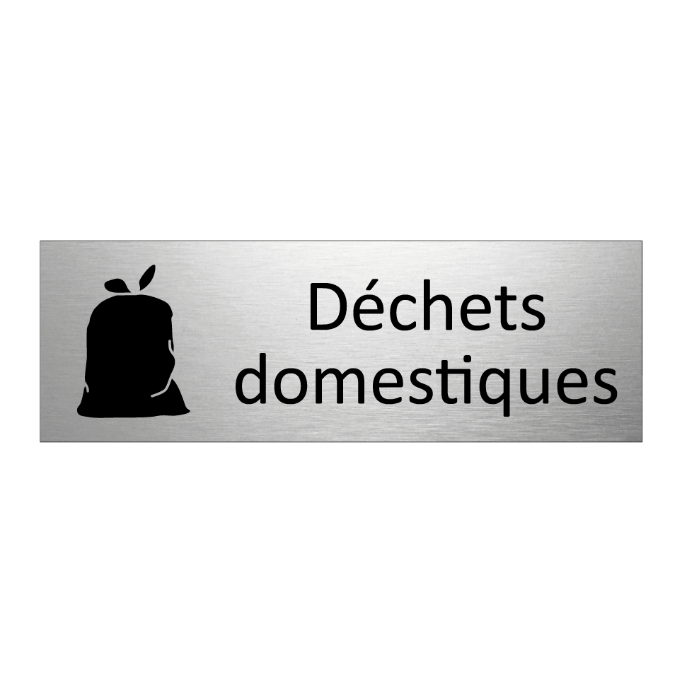 Panneau d'information avec le texte Déchets domestiques et une symbolique claire pour une meilleure visibilité.