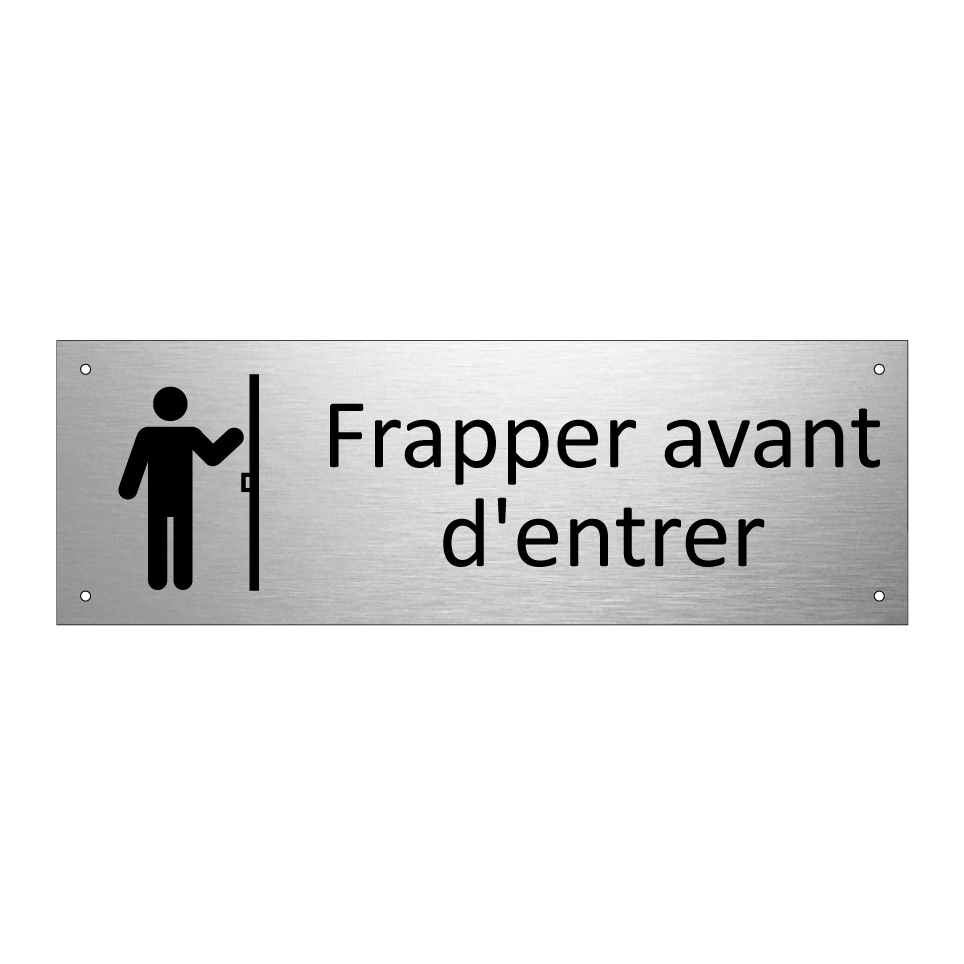 Panneau d'information avec le texte Frapper avant d'entrer et une symbolique claire pour une meilleure visibilité.