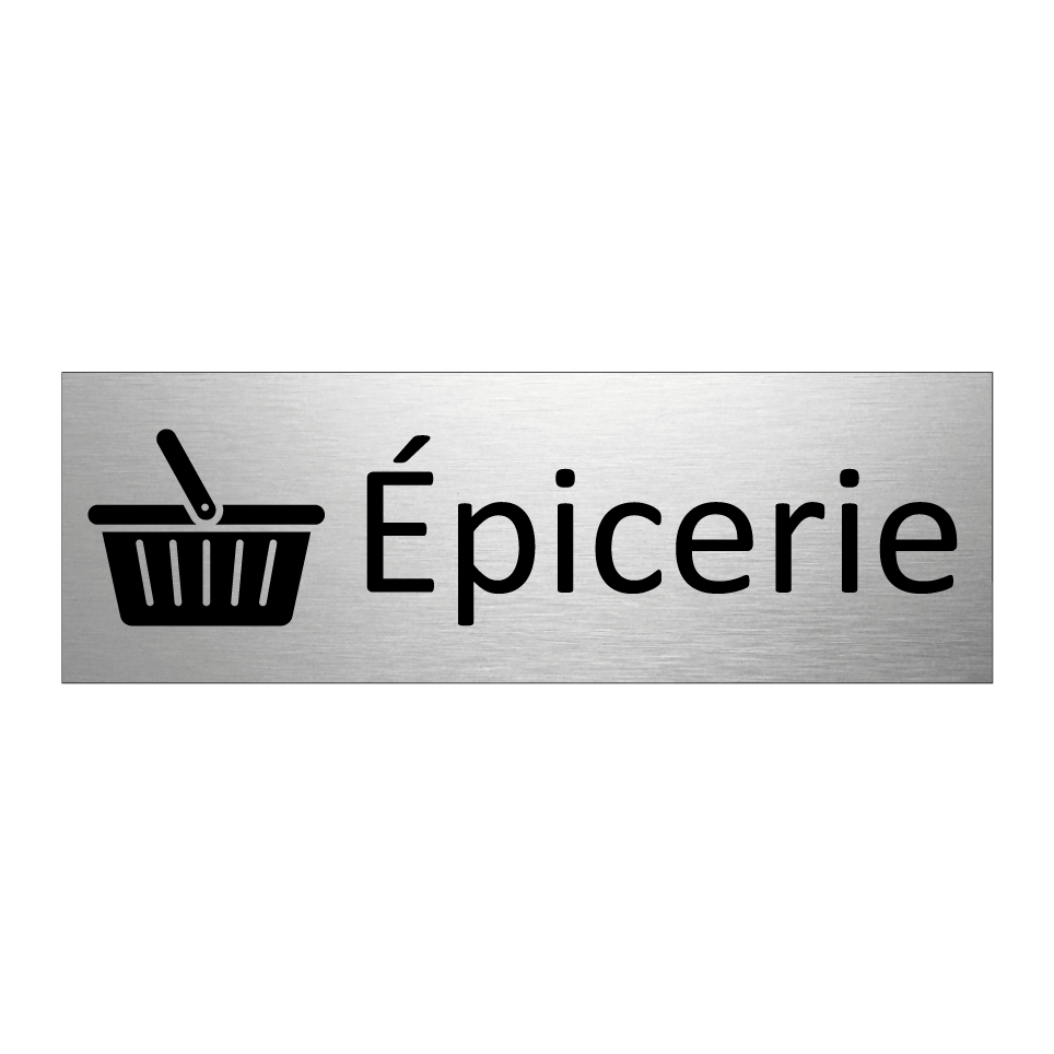 Panneau d'information avec le texte Épicerie et une symbolique claire pour une meilleure visibilité.
