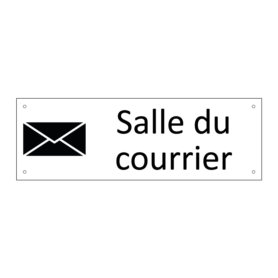 Panneau d'information avec le texte Salle du courrier et une symbolique claire pour une meilleure visibilité.