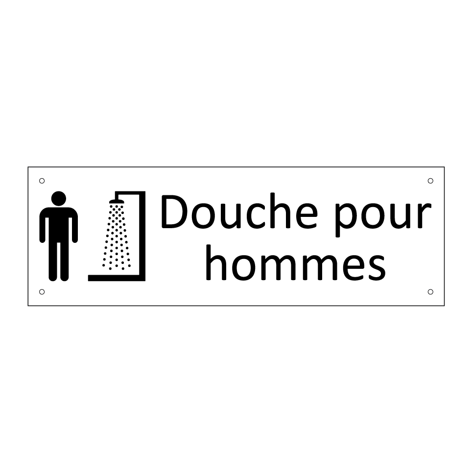 Panneau d'information avec le texte Douche pour hommes et une symbolique claire pour une meilleure visibilité.
